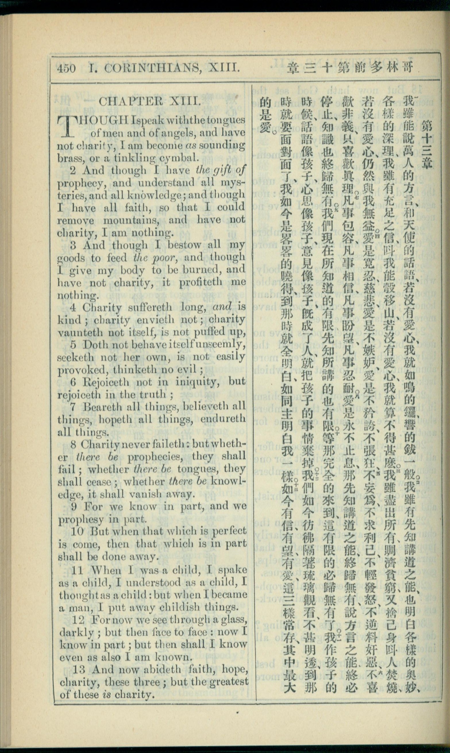 1908年新约全书(中西字) 哥林多前书 13 章 1 节到 13 章 13 节