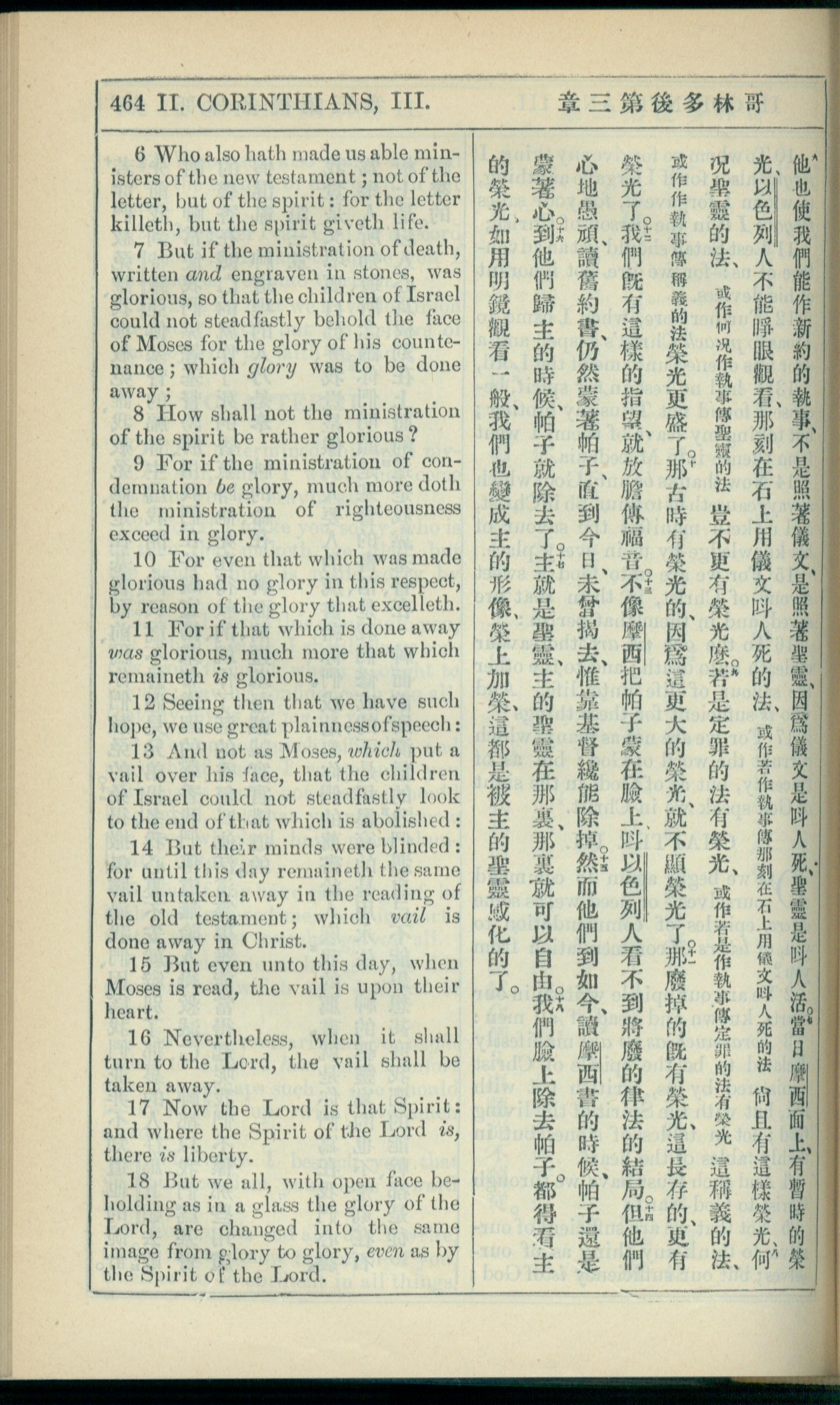1908年新约全书(中西字) 哥林多后书 3 章 6 节到 3 章 18 节