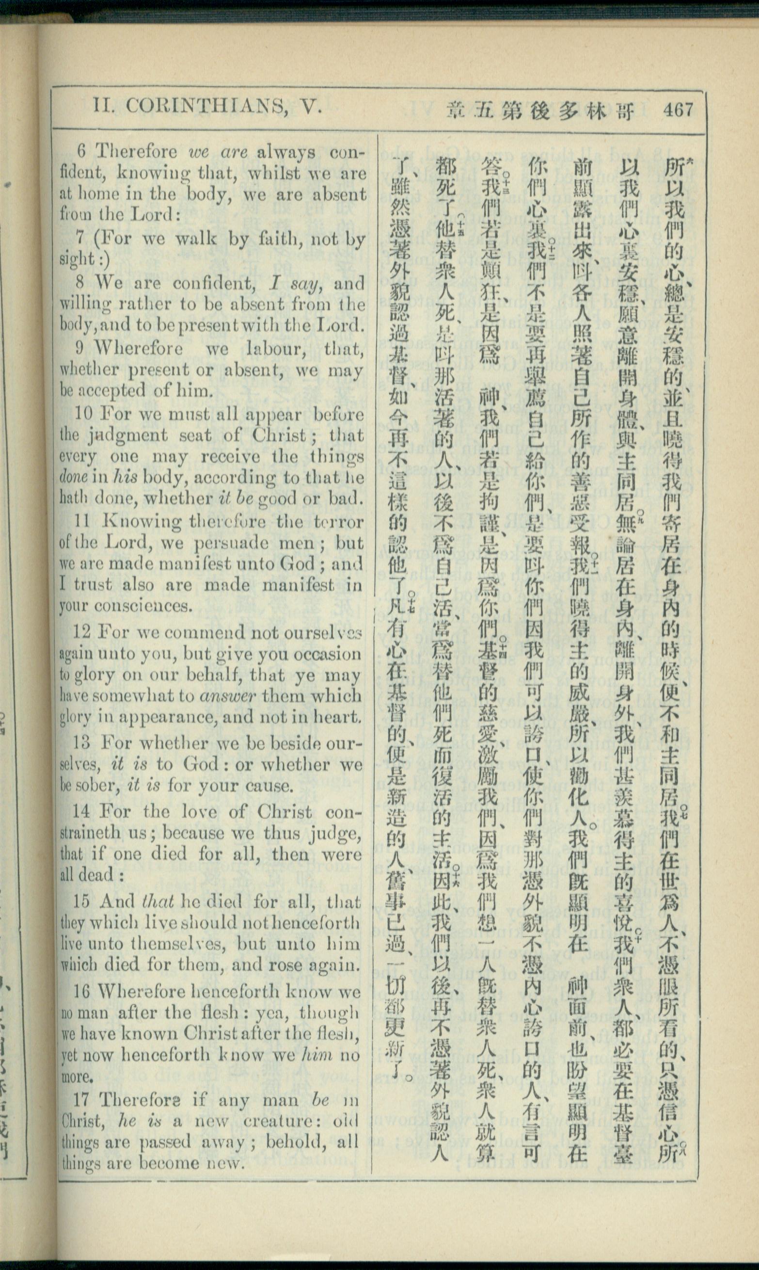 1908年新约全书(中西字) 哥林多后书 5 章 6 节到 5 章 17 节