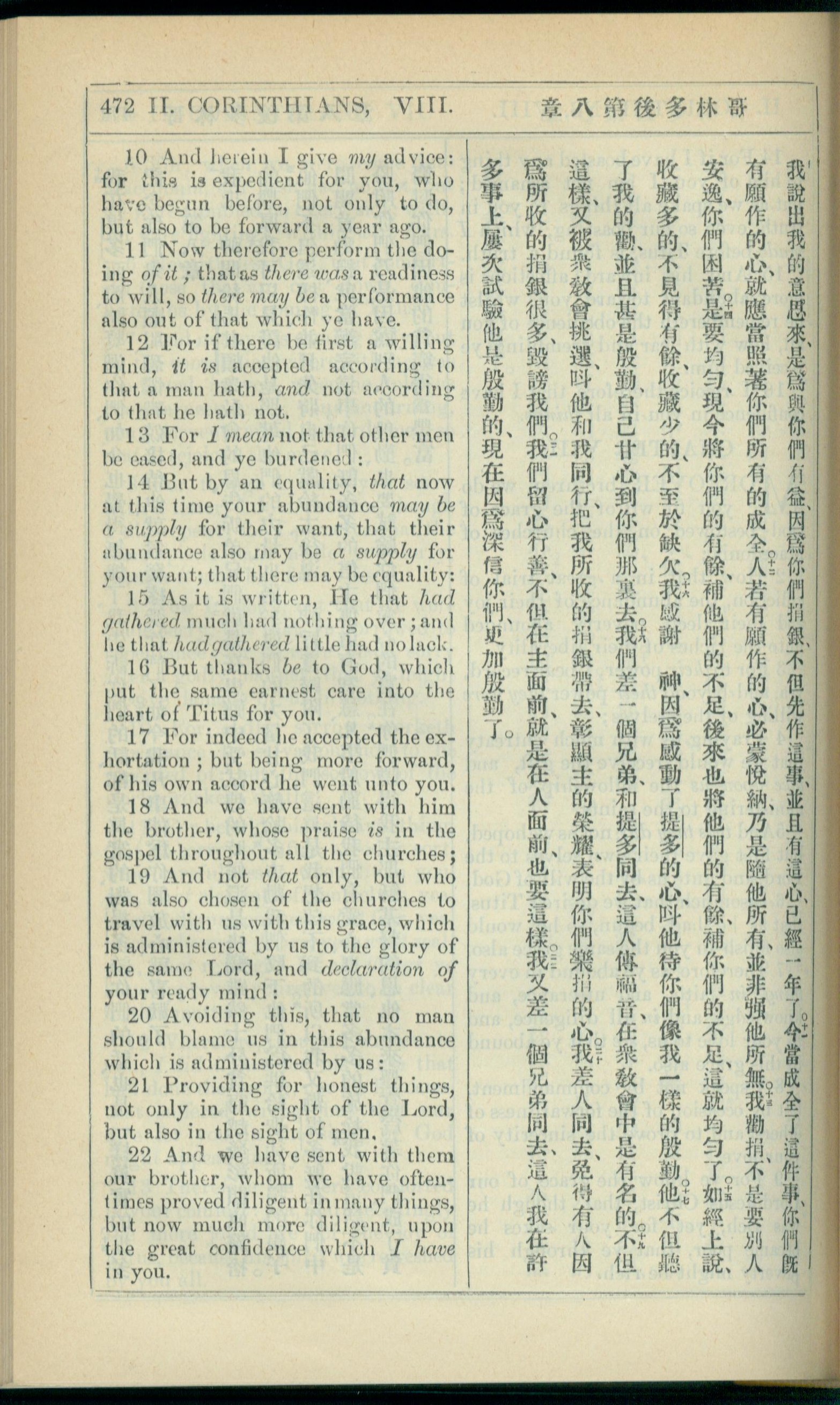 1908年新约全书(中西字) 哥林多后书 8 章 10 节到 8 章 22 节