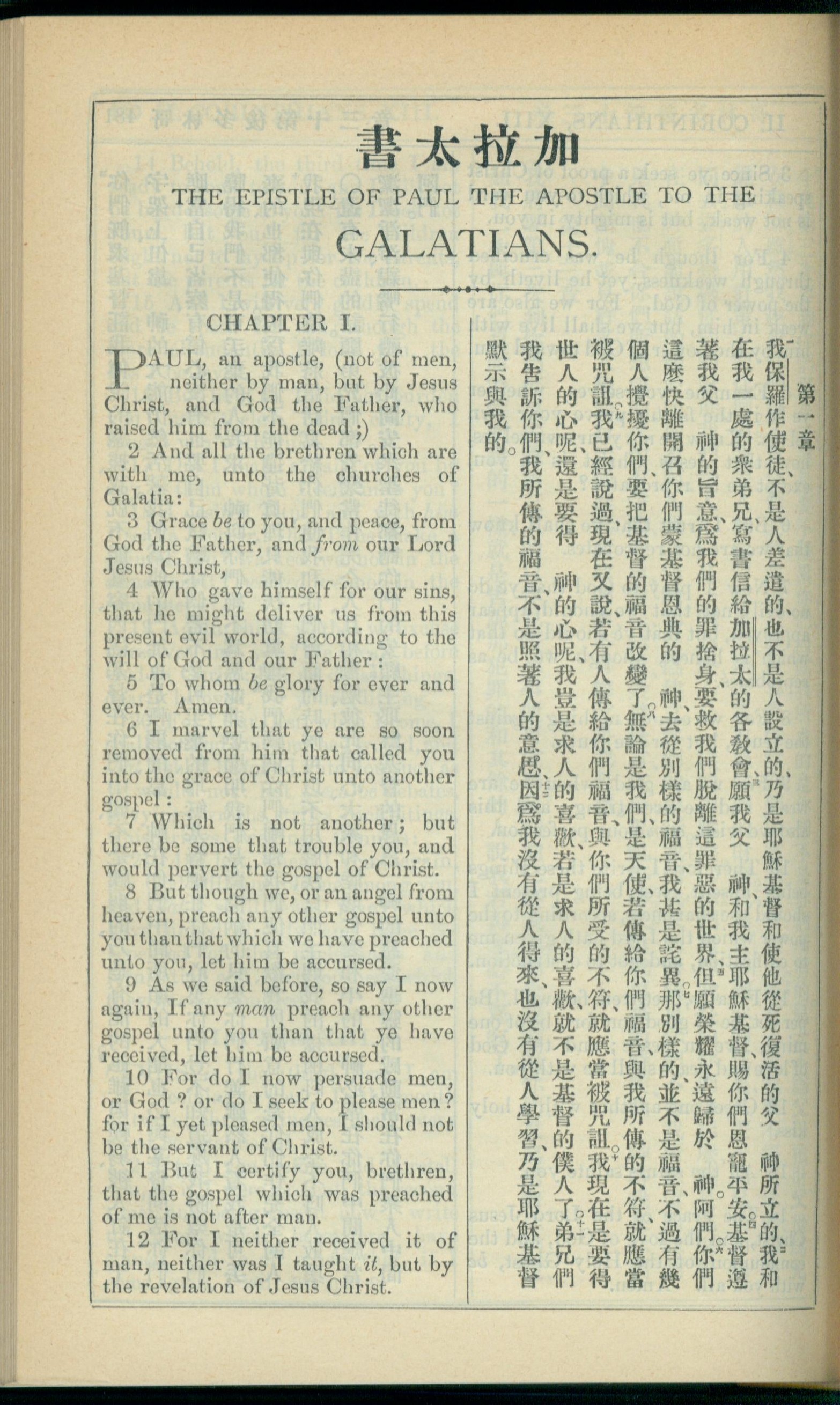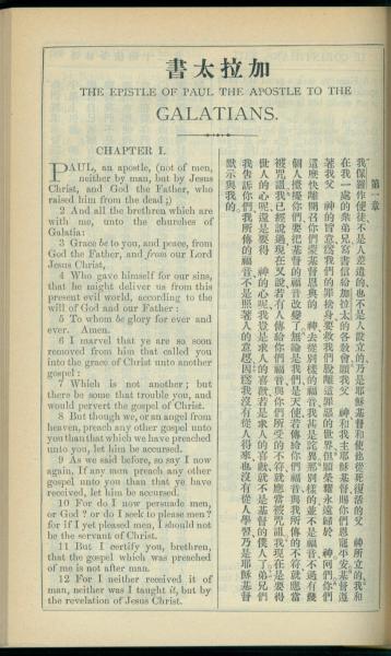 1908年新约全书(中西字) 加拉太书 1 章 1 节到 1 章 12 节