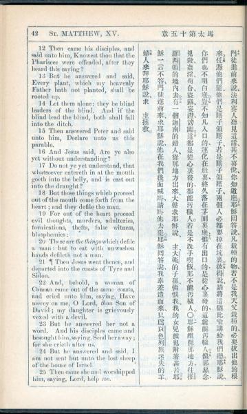 1908年新约全书(中西字) 马太福音 15 章 12 节到 15 章 25 节