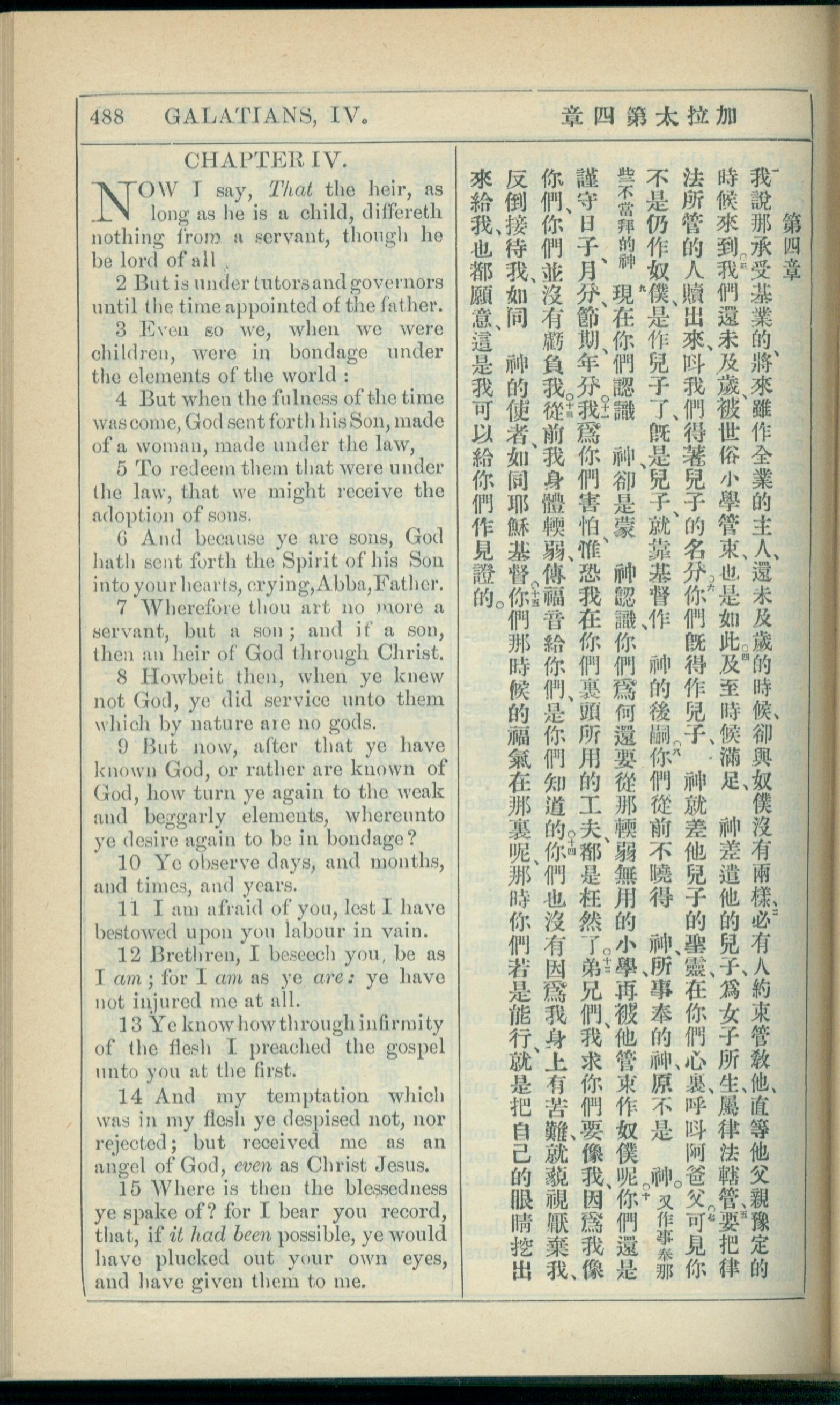 1908年新约全书(中西字) 加拉太书 4 章 1 节到 4 章 15 节