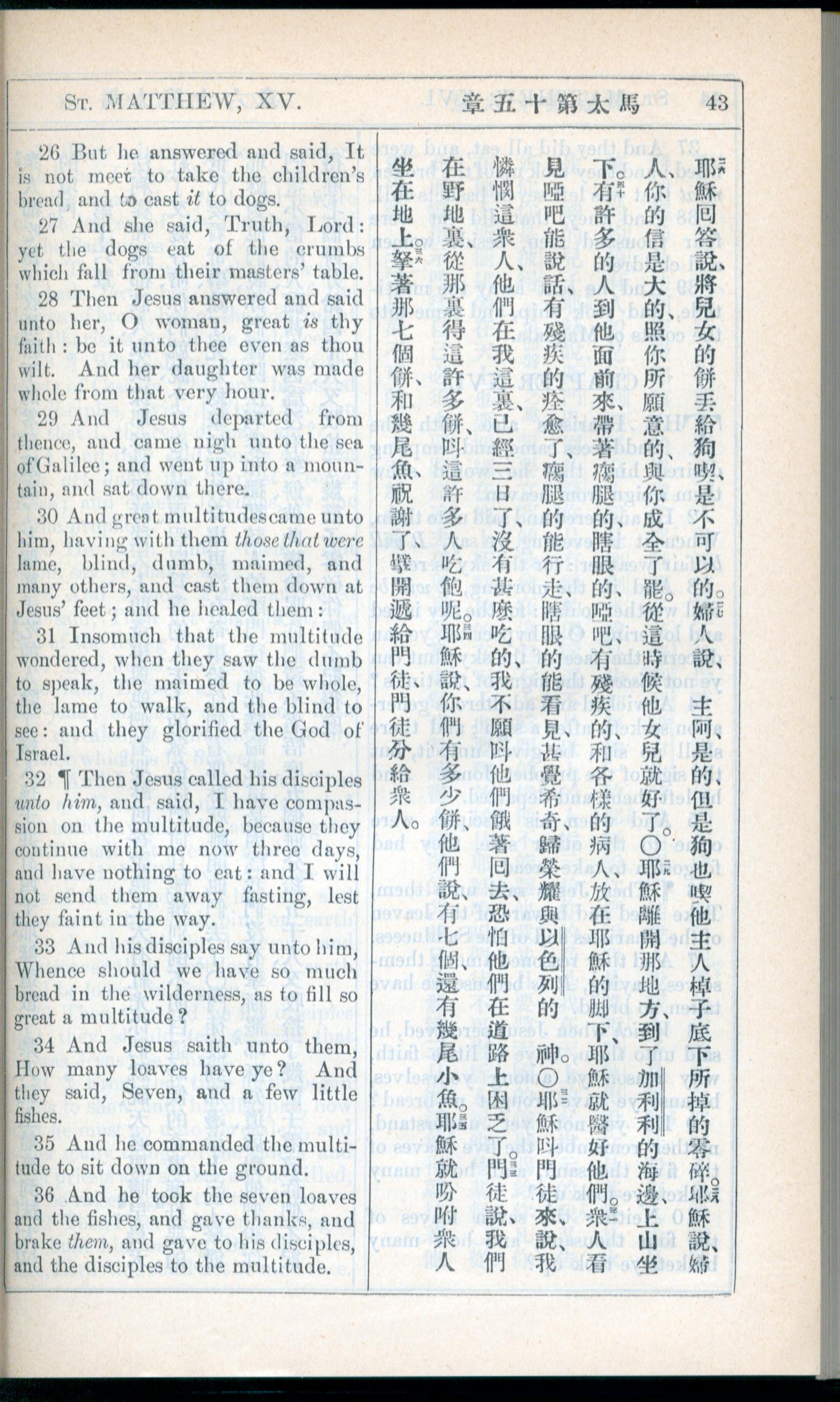 1908年新约全书(中西字) 马太福音 15 章 26 节到 15 章 36 节