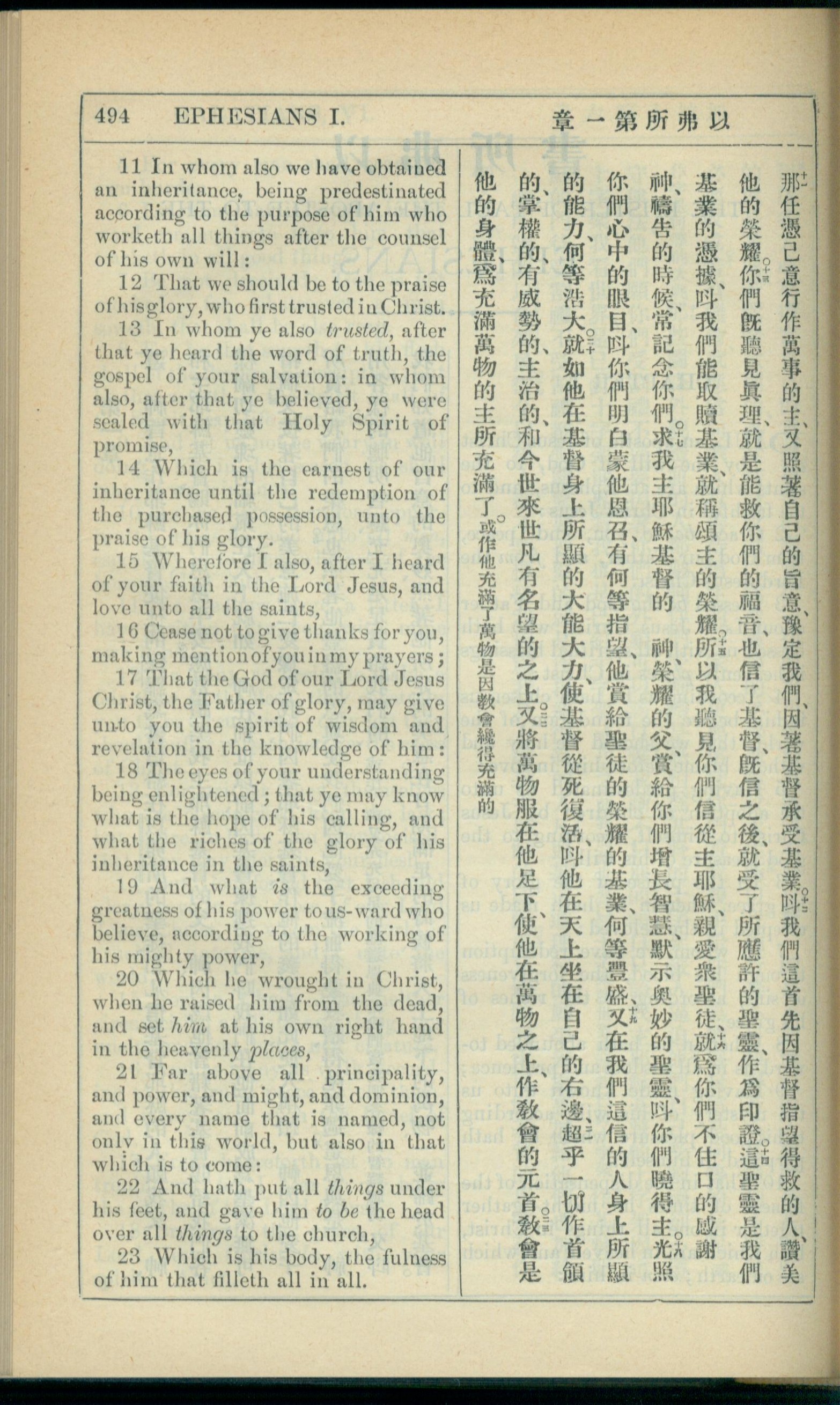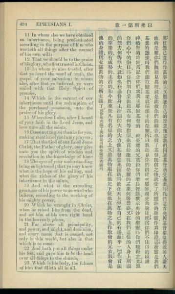 1908年新约全书(中西字) 以弗所书 1 章 11 节到 1 章 23 节