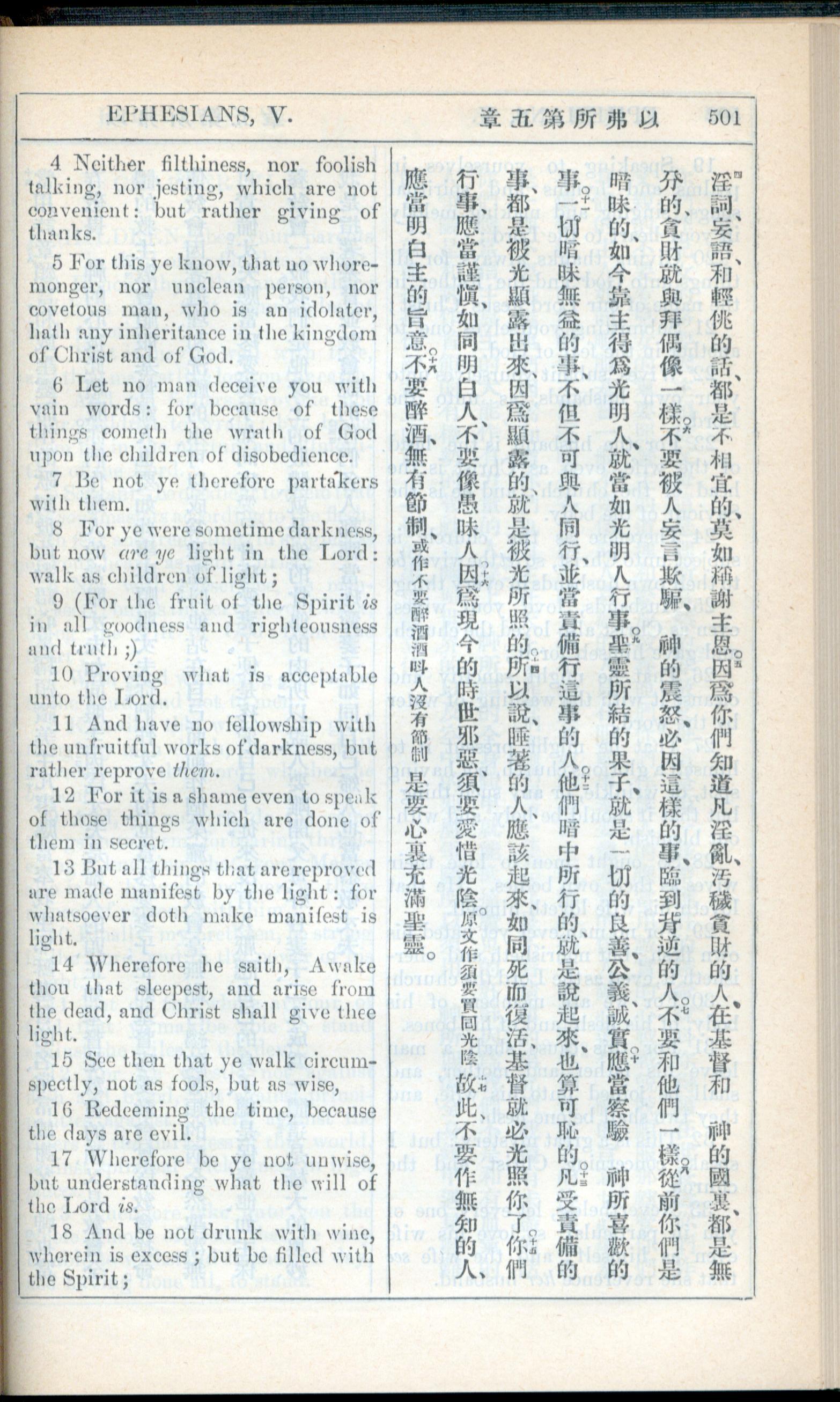 1908年新约全书(中西字) 以弗所书 5 章 4 节到 5 章 18 节