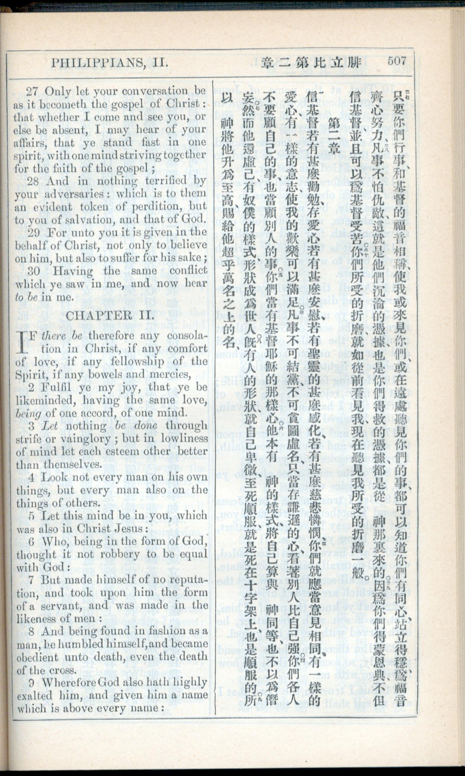 1908年新约全书(中西字) 腓立比书 1 章 27 节到 2 章 9 节