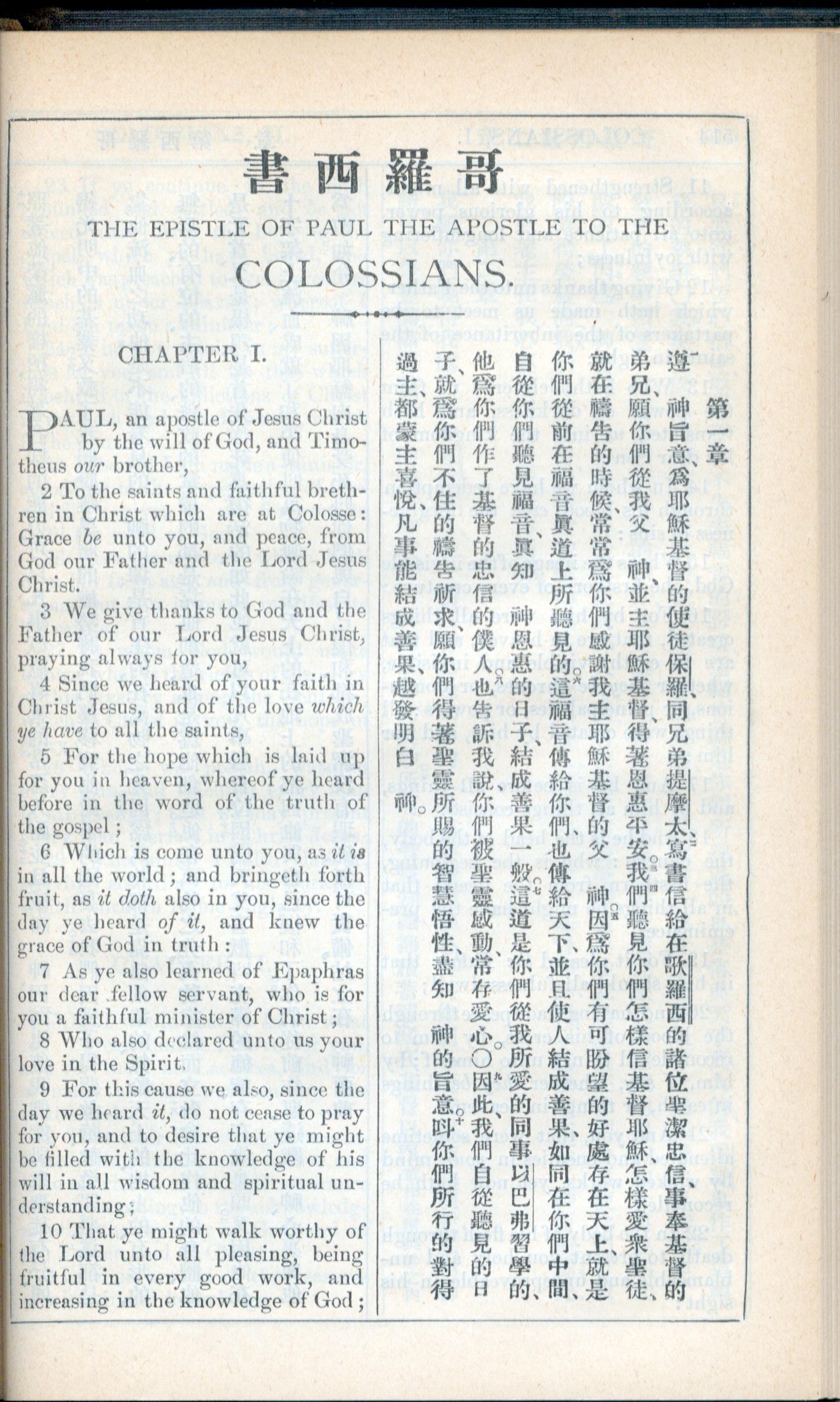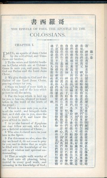 1908年新约全书(中西字) 歌罗西书 1 章 1 节到 1 章 10 节
