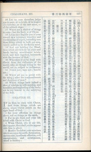 1908年新约全书(中西字) 歌罗西书 2 章 16 节到 3 章 5 节