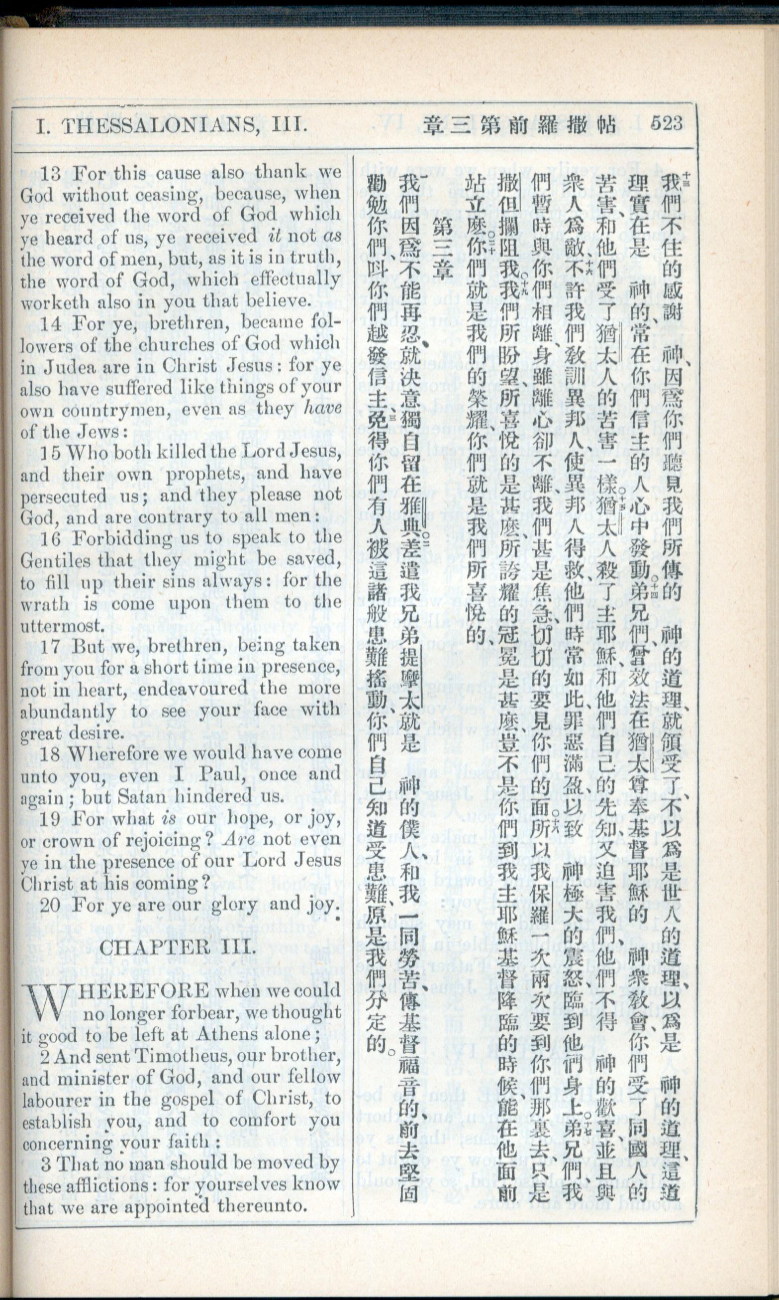 1908年新约全书(中西字) 帖撒罗尼迦前书 2 章 13 节到 3 章 3 节