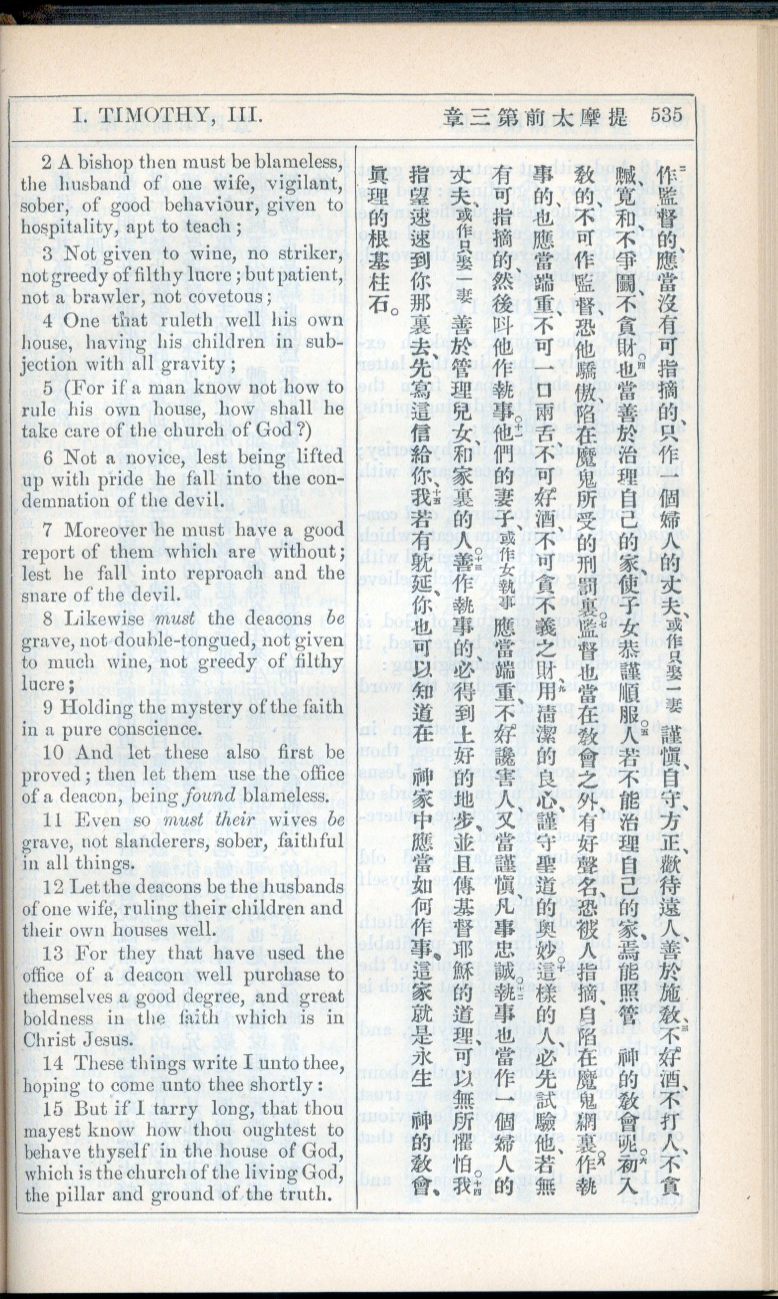 1908年新约全书(中西字) 提摩太前书 3 章 2 节到 3 章 15 节