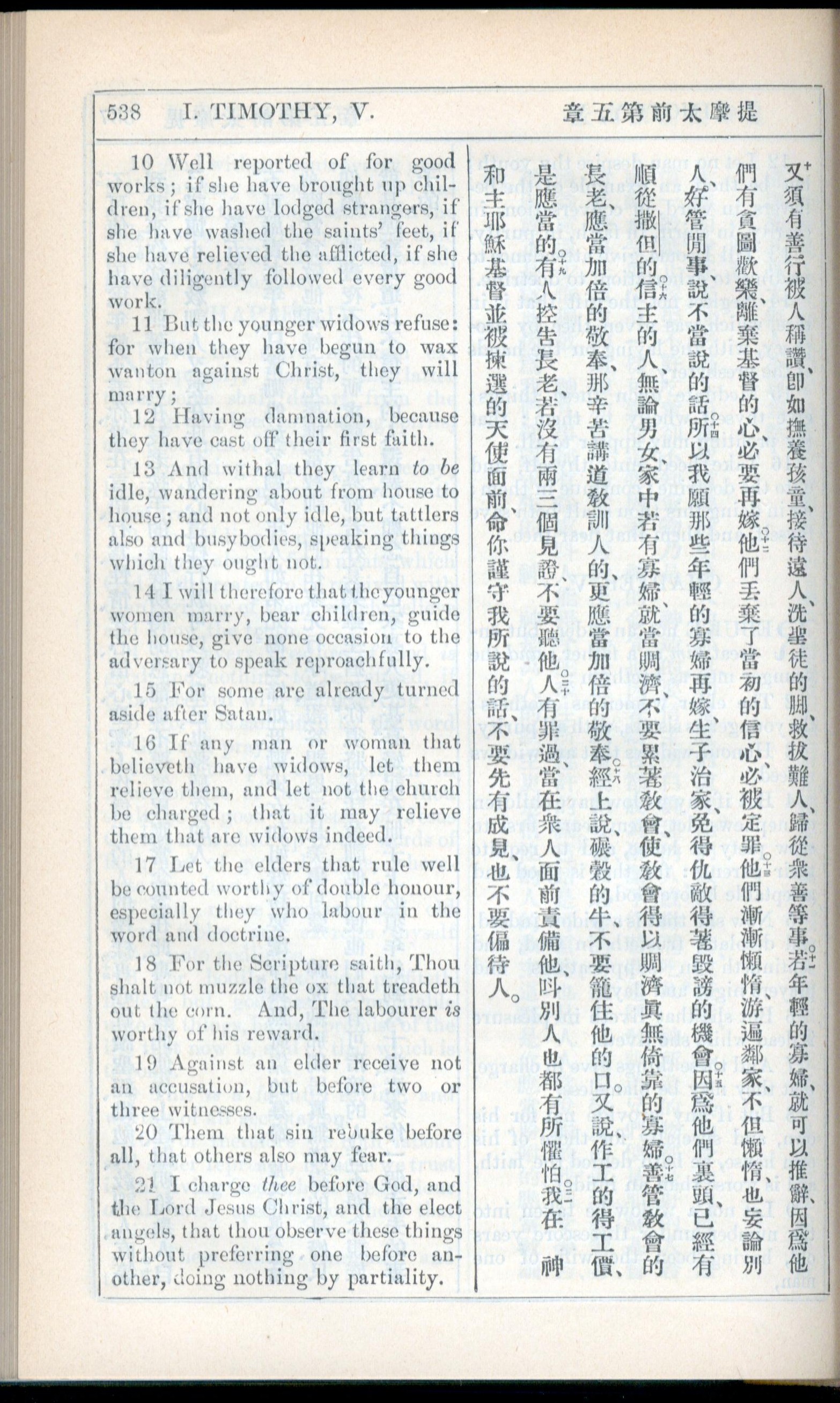 1908年新约全书(中西字) 提摩太前书 5 章 10 节到 5 章 21 节