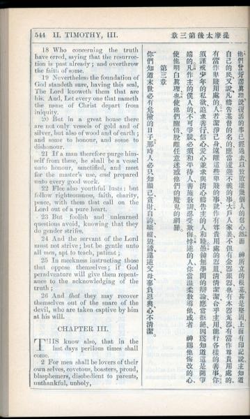 1908年新约全书(中西字) 提摩太后书 2 章 18 节到 3 章 2 节