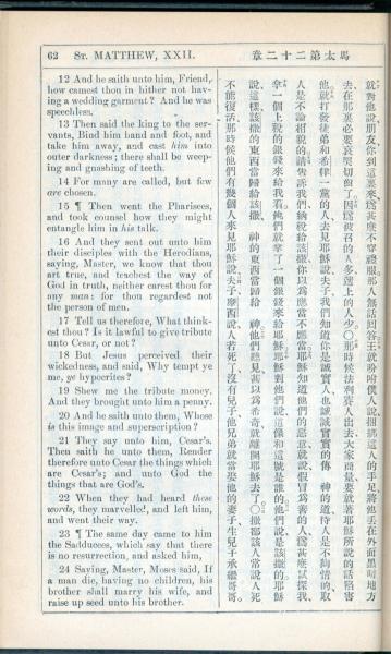 1908年新约全书(中西字) 马太福音 22 章 12 节到 22 章 24 节