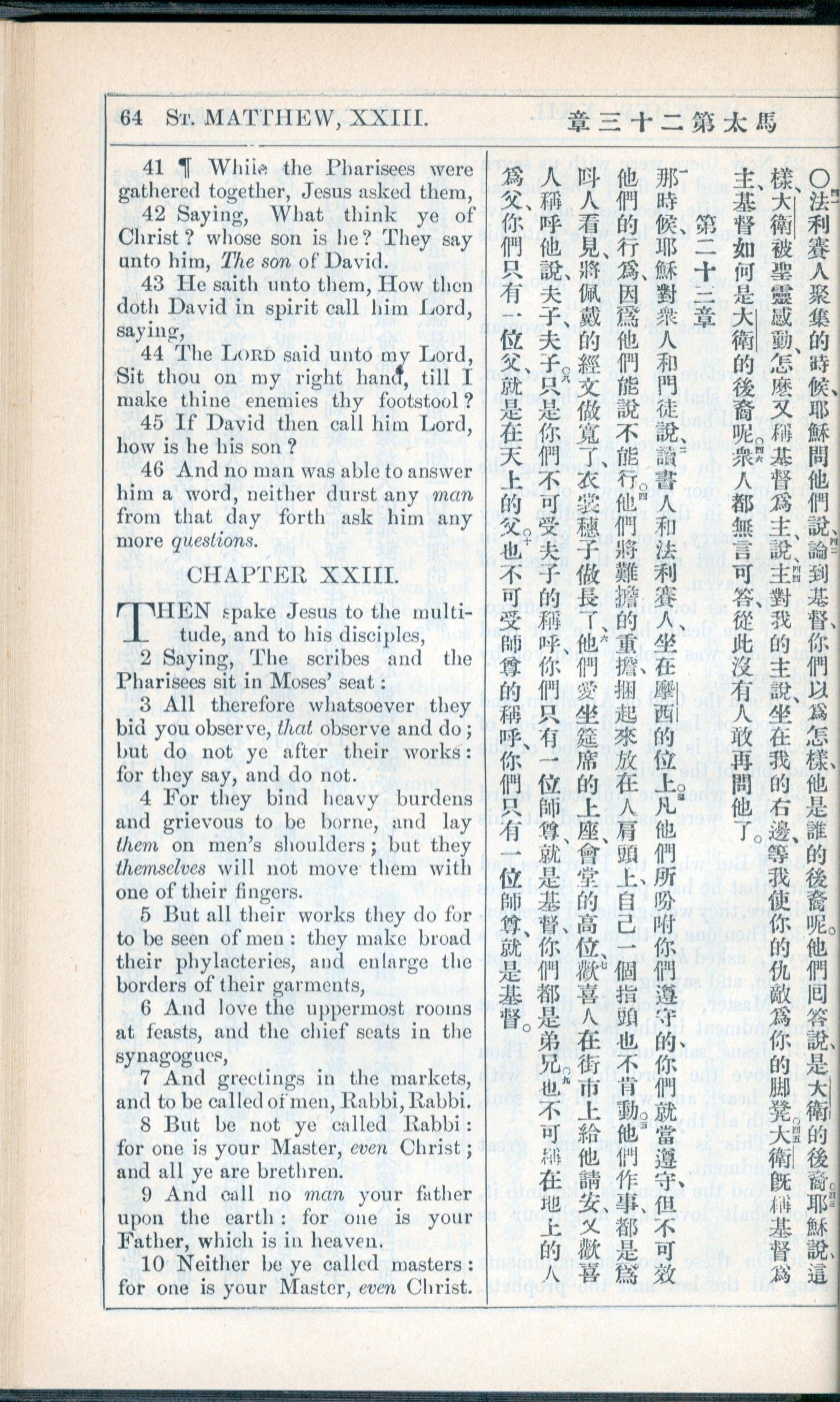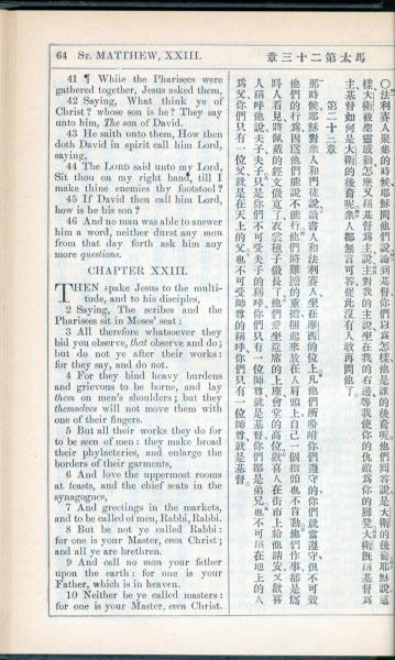 1908年新约全书(中西字) 马太福音 22 章 41 节到 23 章 10 节