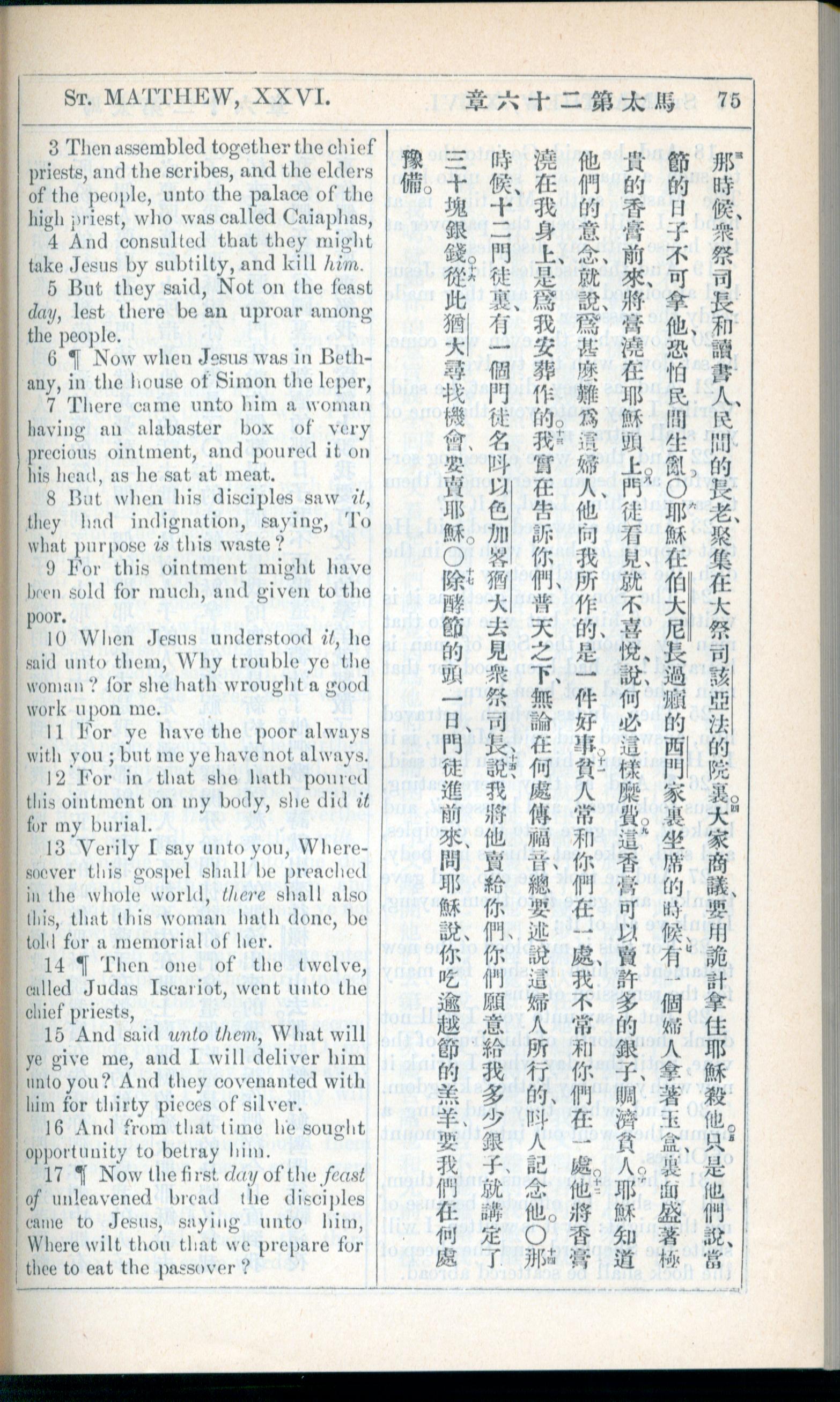1908年新约全书(中西字) 马太福音 26 章 3 节到 26 章 17 节