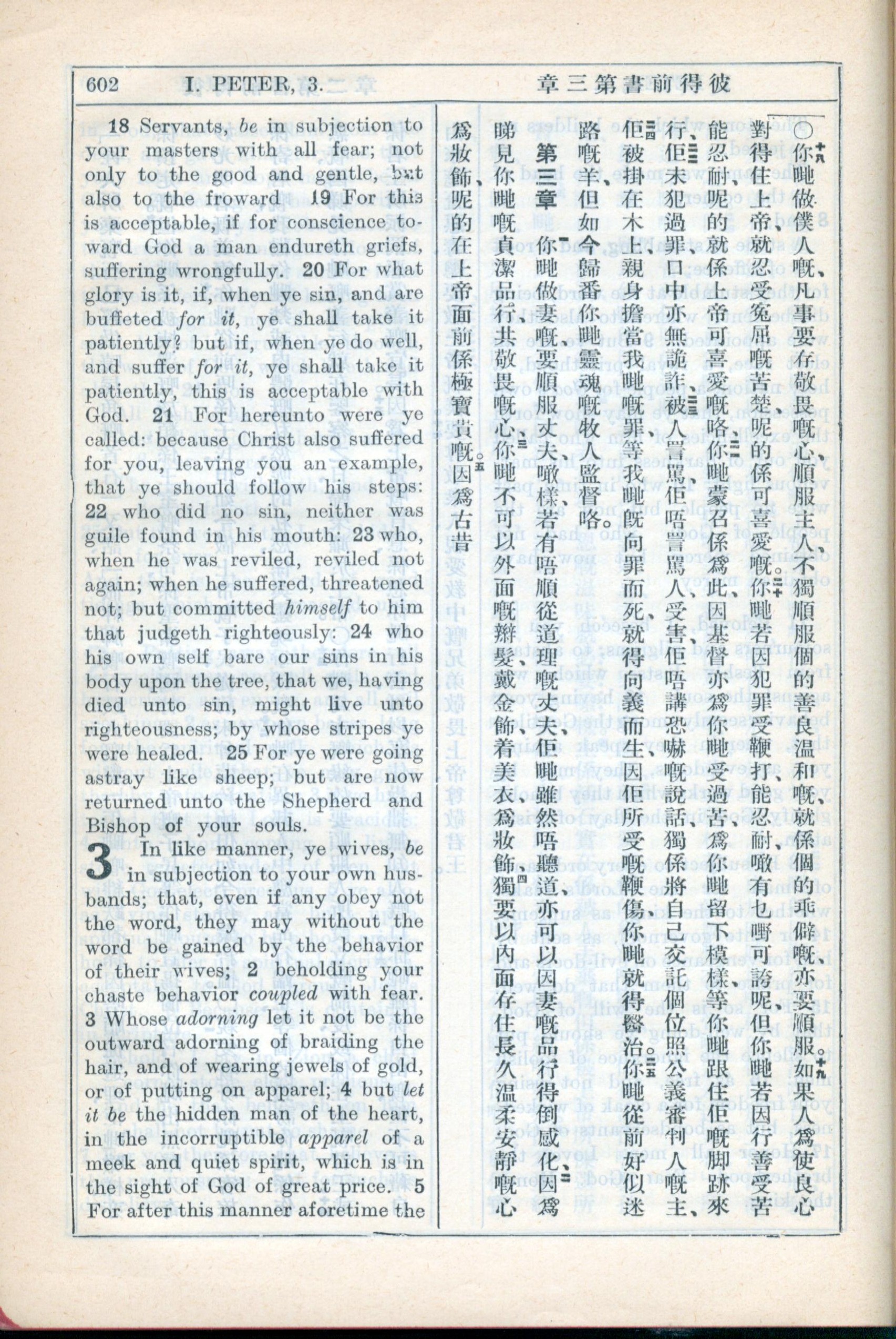 1931年新约全书广东话新译本与美国新译英文 彼得前书 2 章 18 节到 3 章 5 节