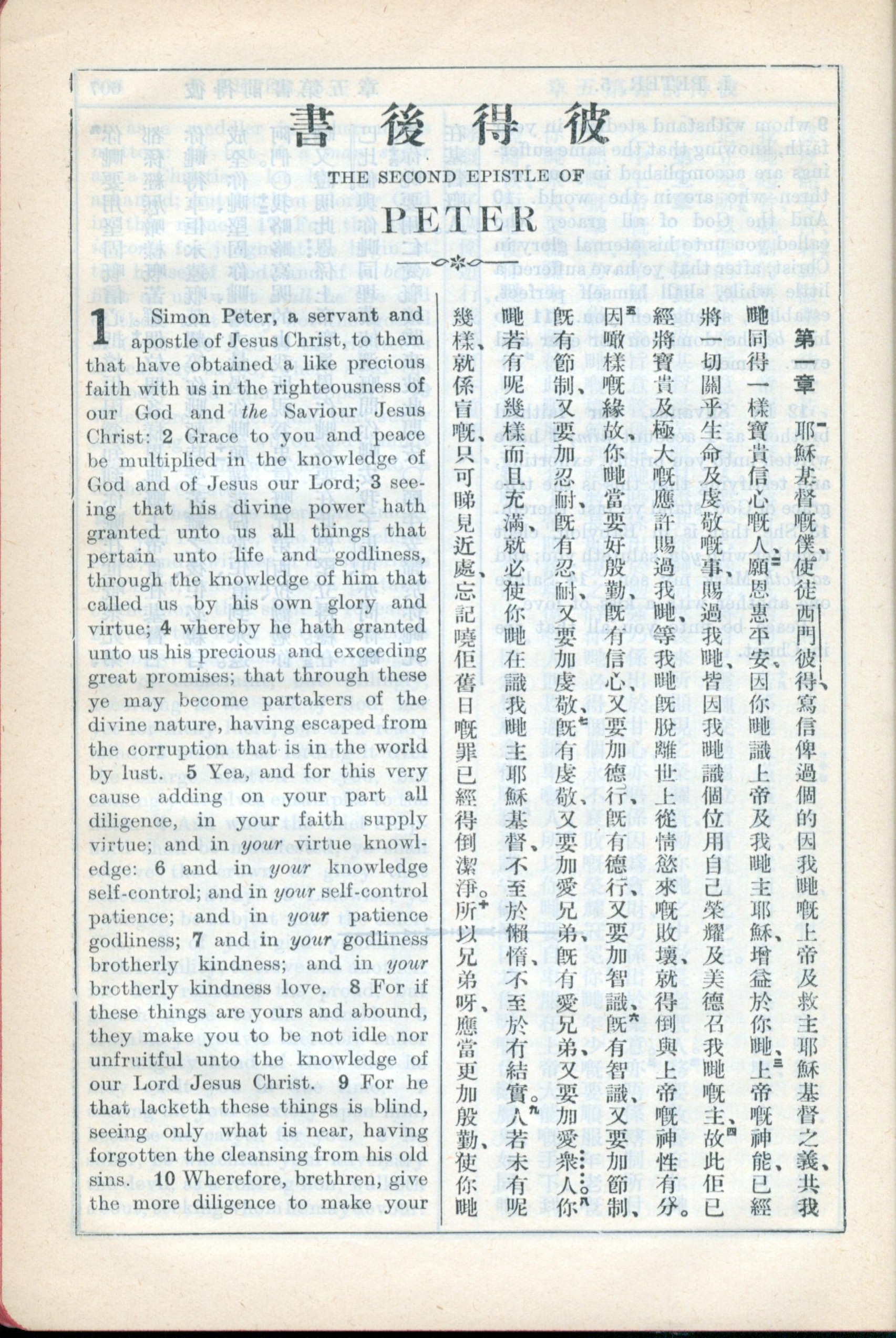 1931年新约全书广东话新译本与美国新译英文 彼得后书 1 章 1 节到 1 章 10 节