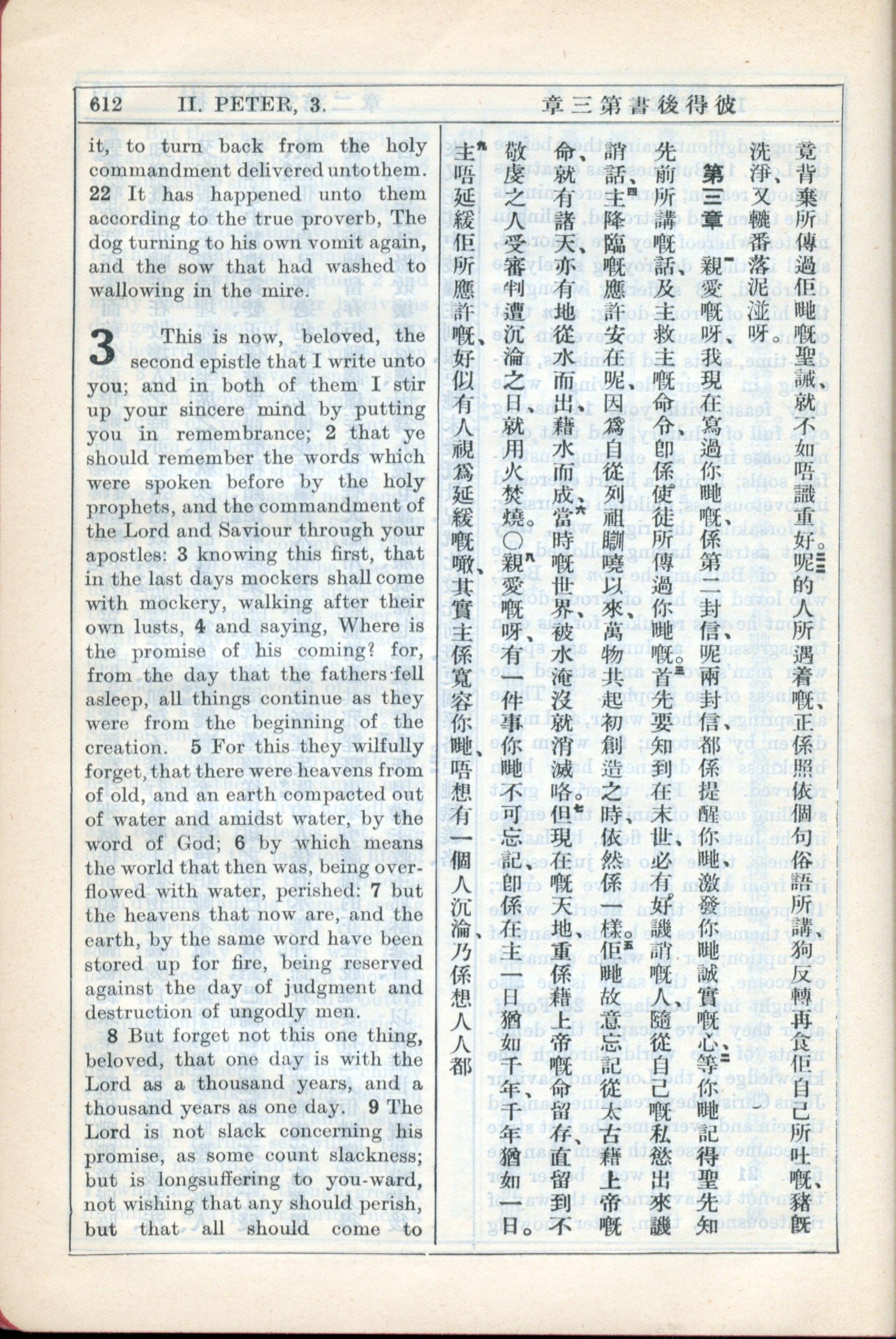 1931年新约全书广东话新译本与美国新译英文 彼得后书 2 章 22 节到 3 章 9 节