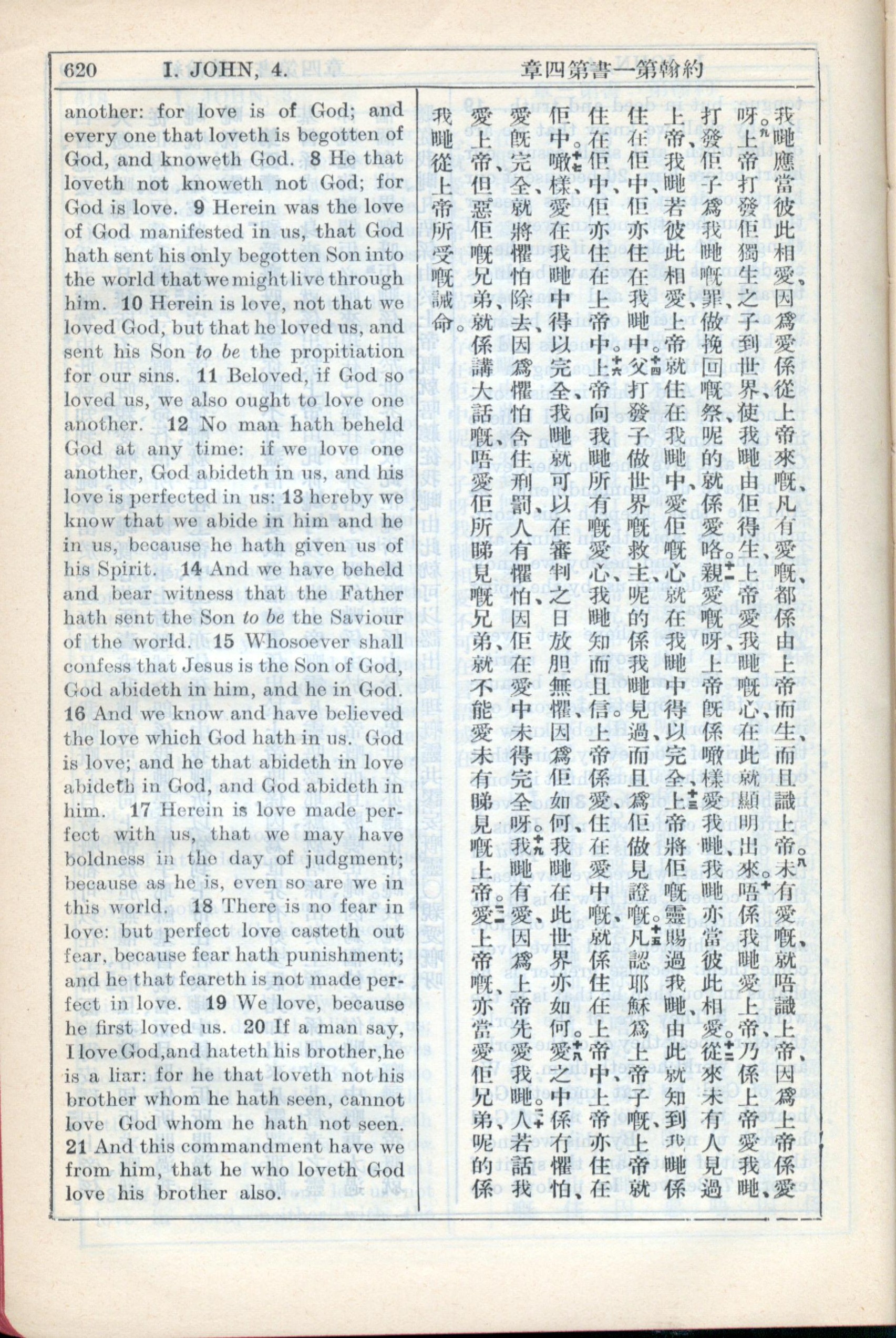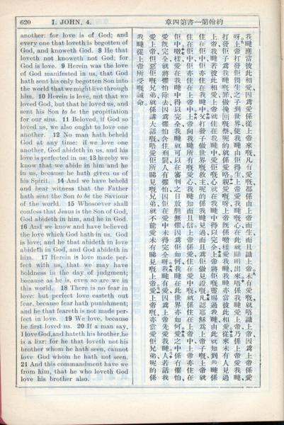 1931年新约全书广东话新译本与美国新译英文 约翰一书 4 章 8 节到 4 章 21 节