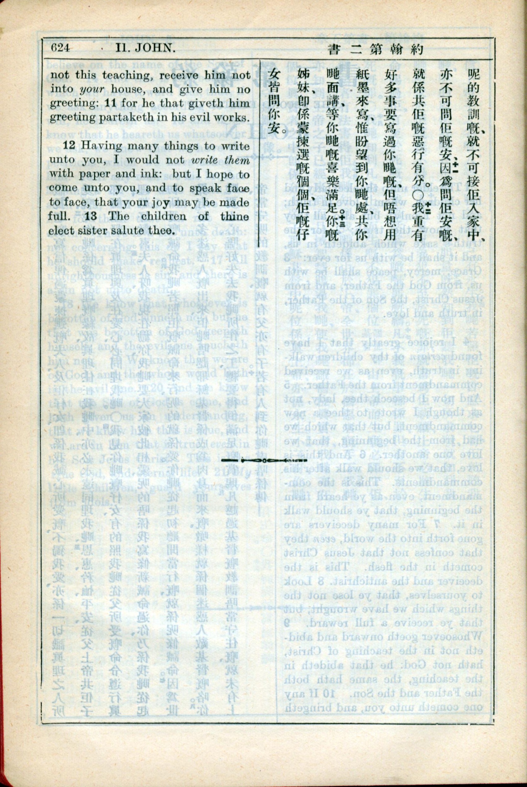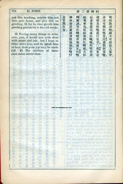 1931年新约全书广东话新译本与美国新译英文 约翰二书 1 章 11 节到 1 章 13 节