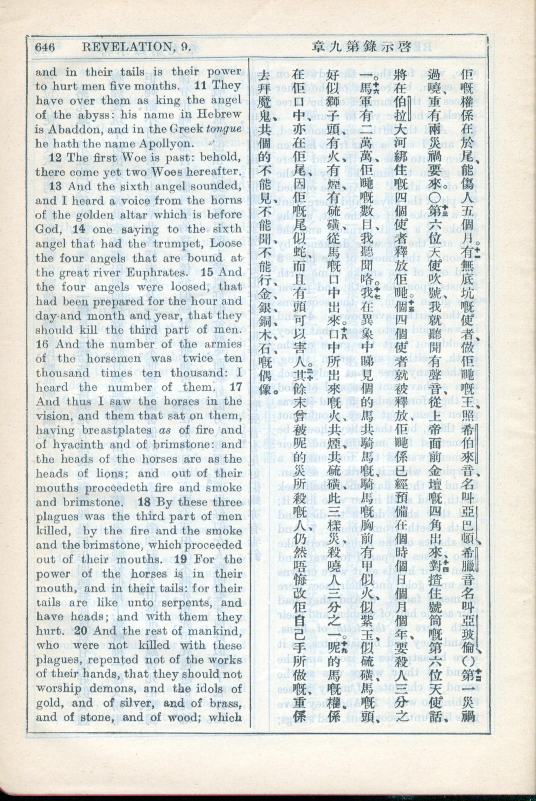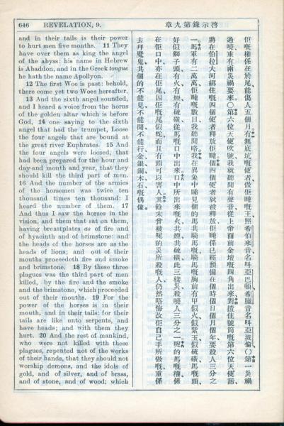 1931年新约全书广东话新译本与美国新译英文 启示录 9 章 11 节到 9 章 20 节