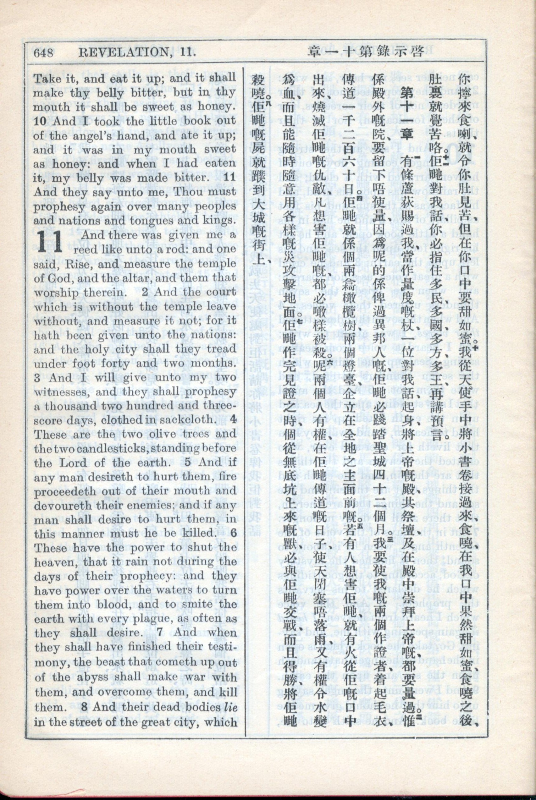 1931年新约全书广东话新译本与美国新译英文 启示录 10 章 10 节到 11 章 8 节