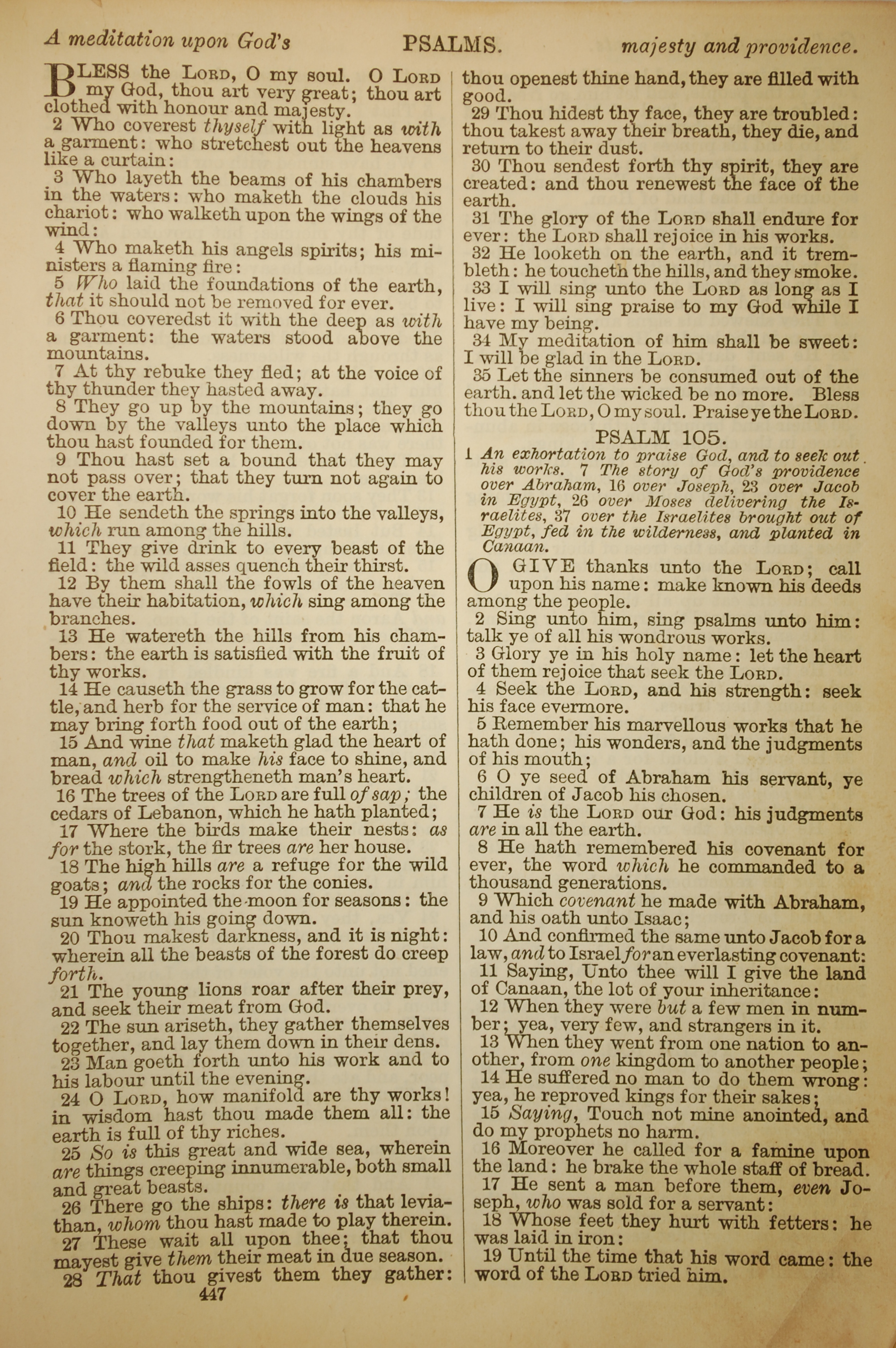 1886年英文圣经 诗篇 104 章 2 节到 105 章 19 节