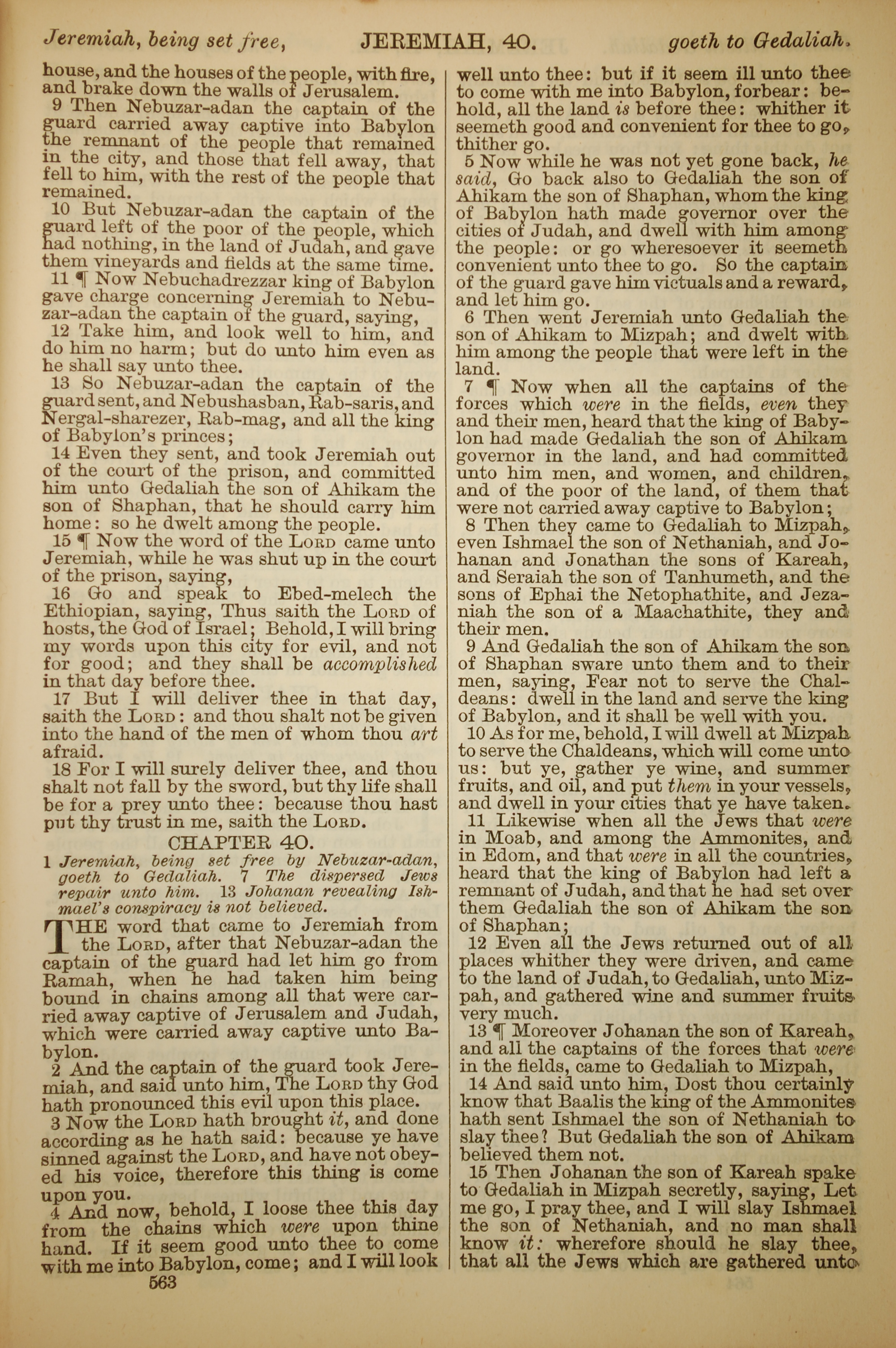 1886年英文圣经 耶利米书 39 章 9 节到 40 章 15 节