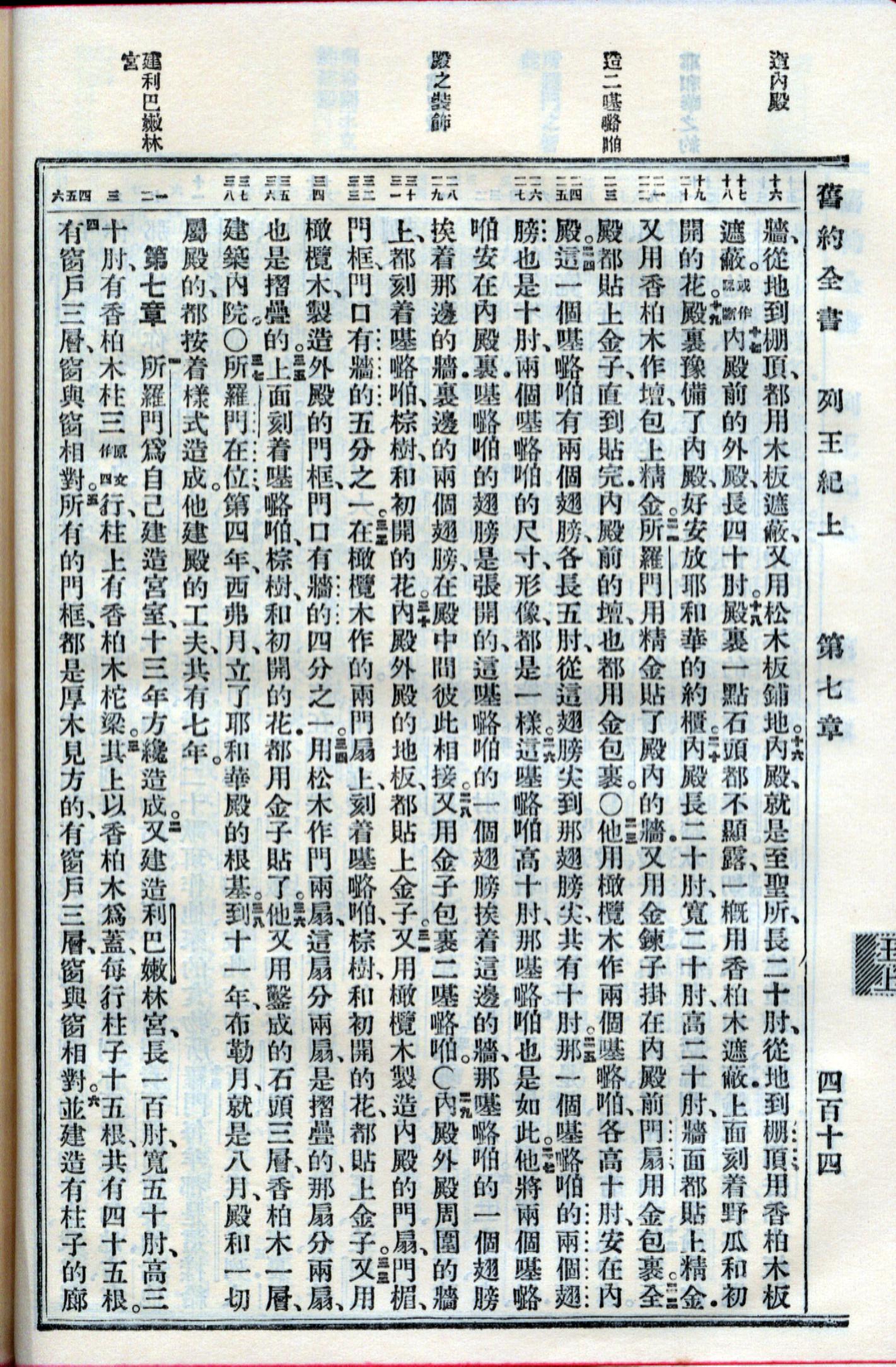 1959年新旧约全书 列王纪上 6 章 16 节到 7 章 6 节