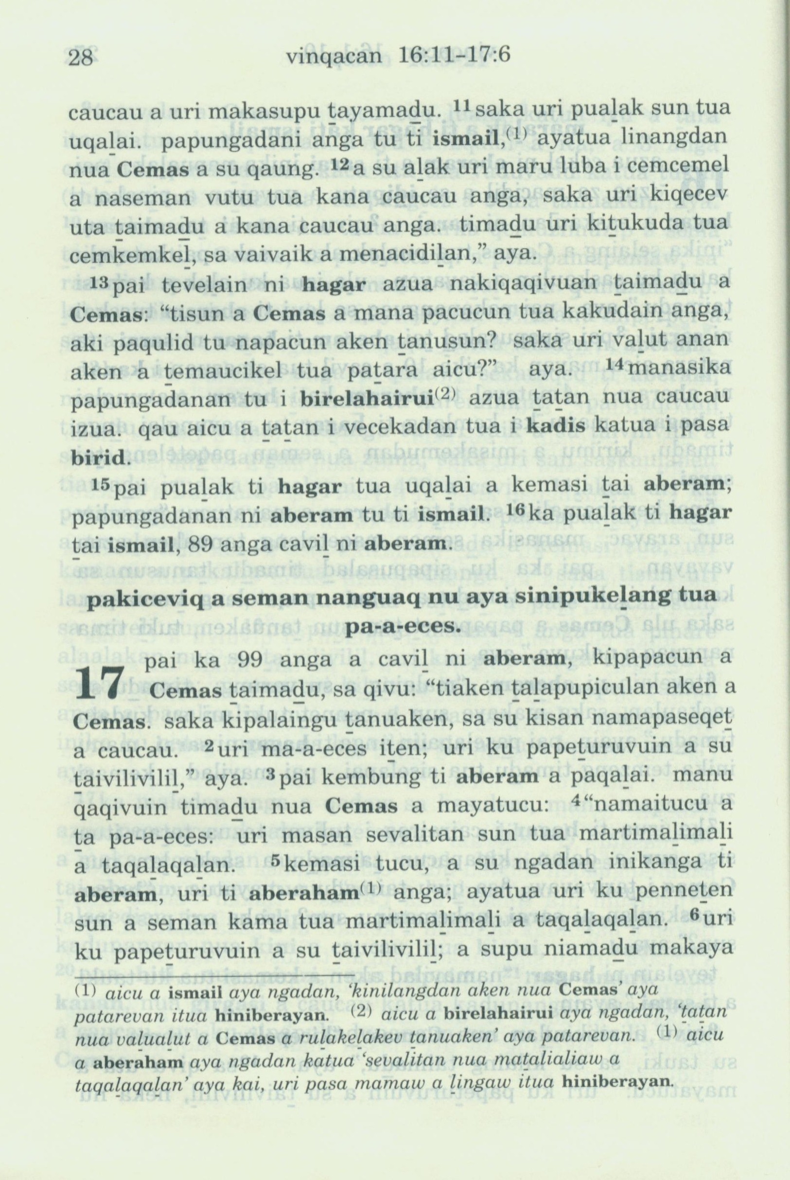 1993年新旧约全书 创世记 16 章 11 节到 17 章 6 节