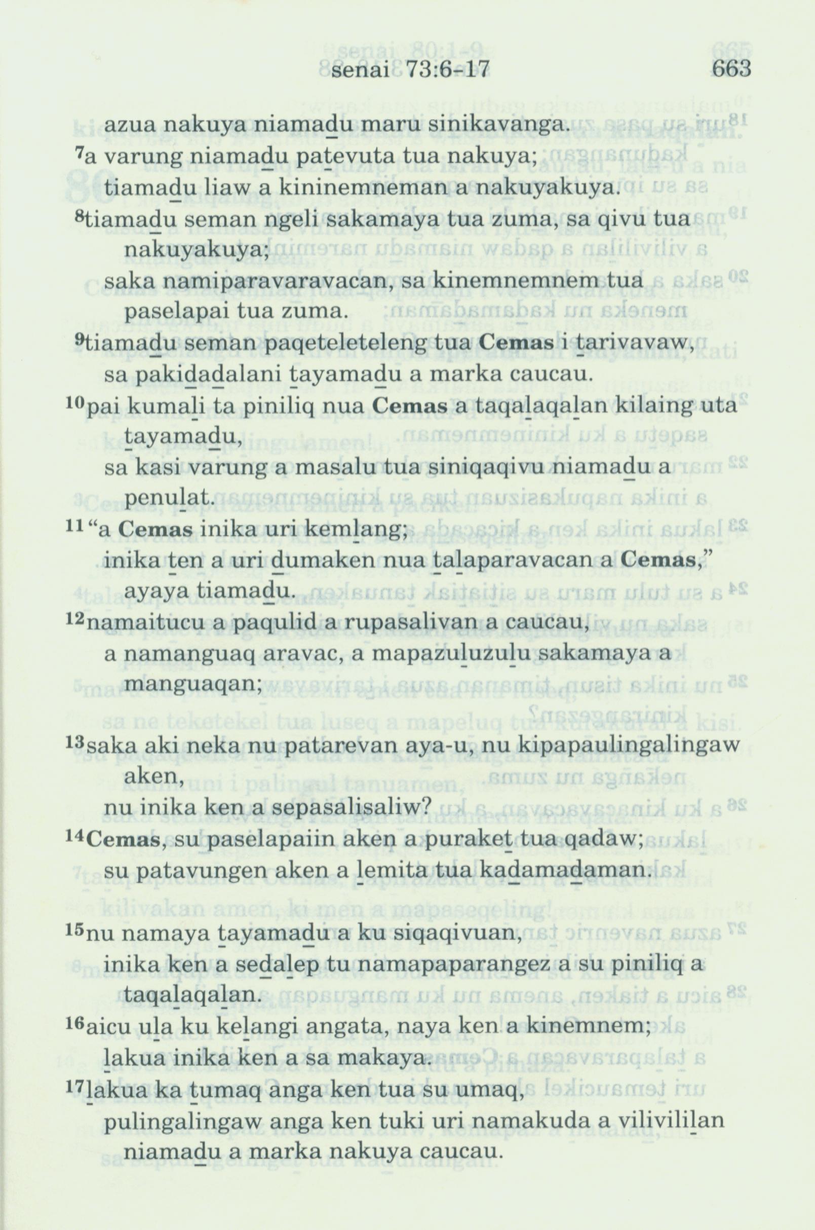 1993年新旧约全书 诗篇 73 章 7 节到 73 章 17 节