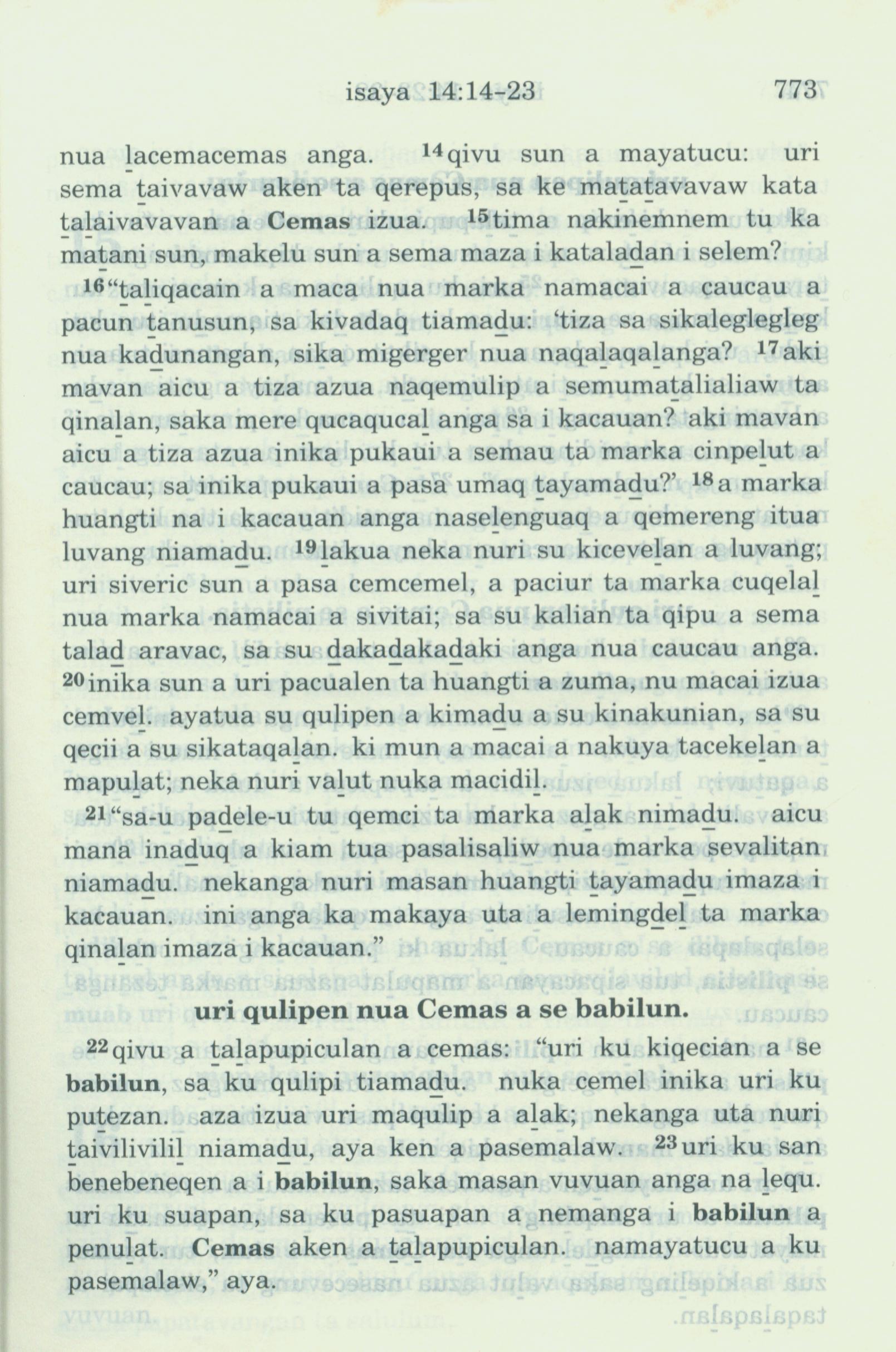1993年新旧约全书 以赛亚书 14 章 14 节到 14 章 23 节