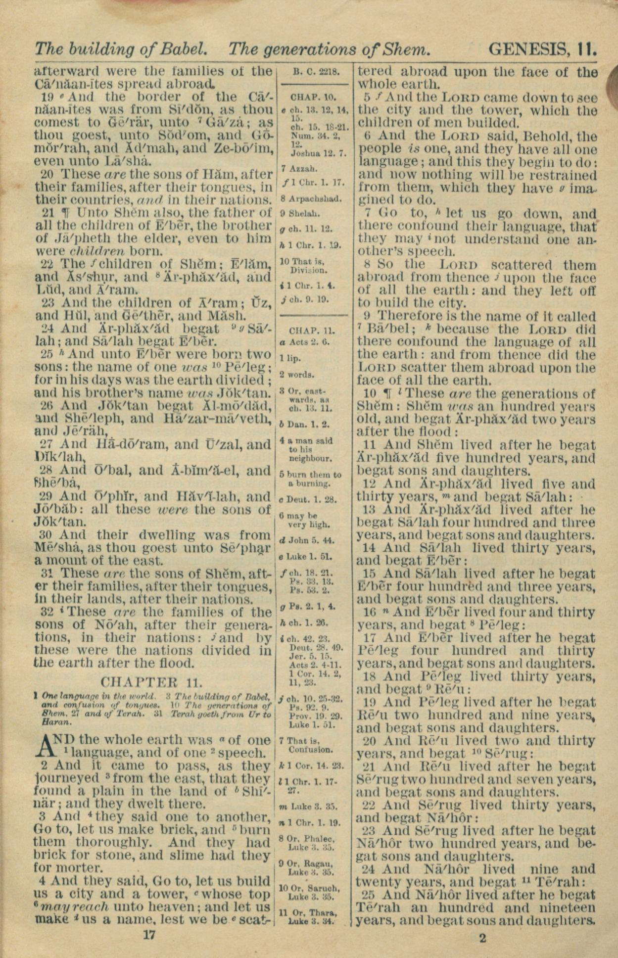 1916年Holy Bible 创世记 10 章 19 节到 11 章 25 节