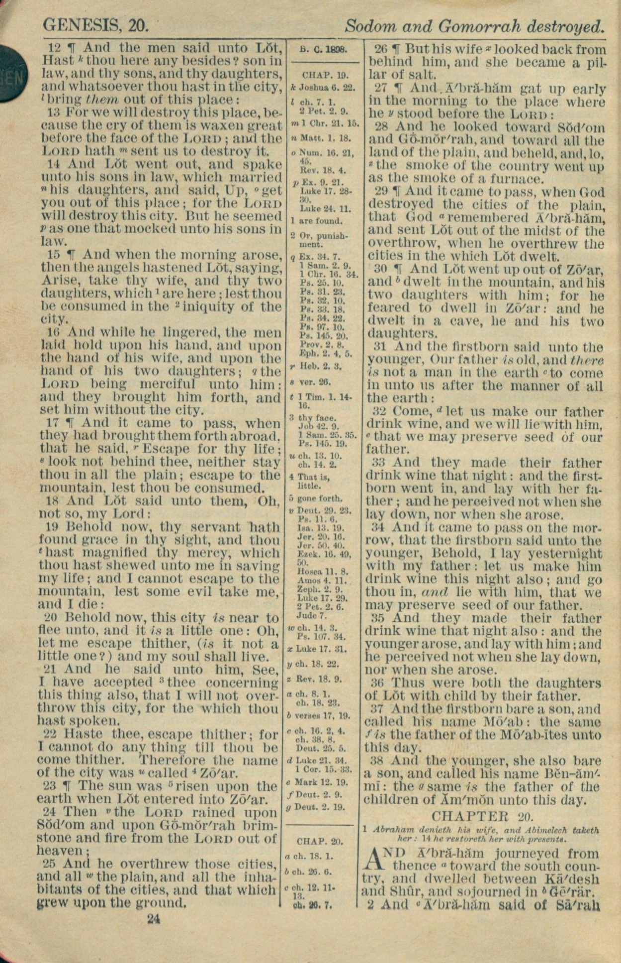 1916年Holy Bible 创世记 19 章 12 节到 20 章 2 节