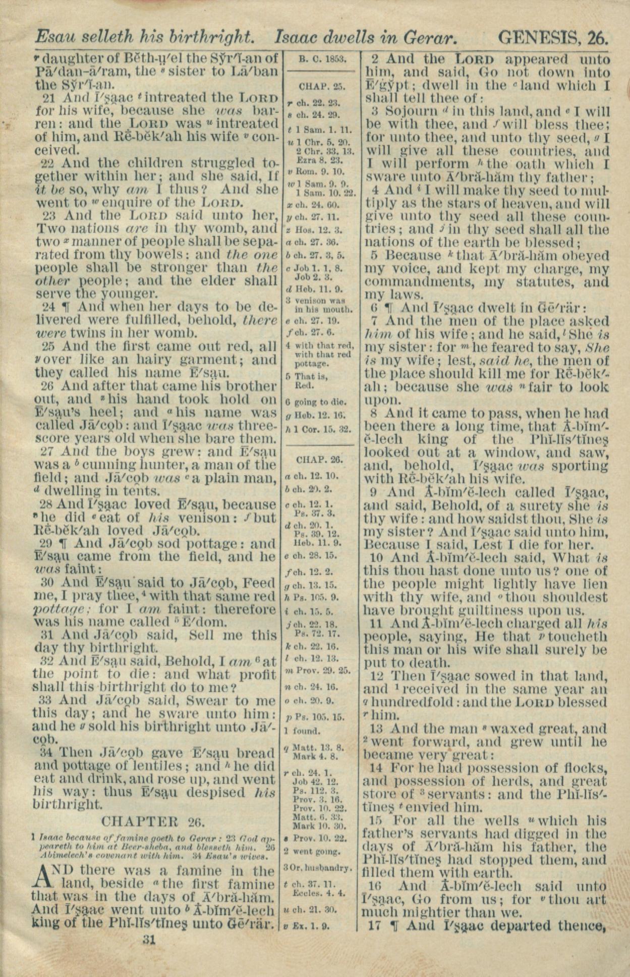 1916年Holy Bible 创世记 25 章 21 节到 26 章 17 节