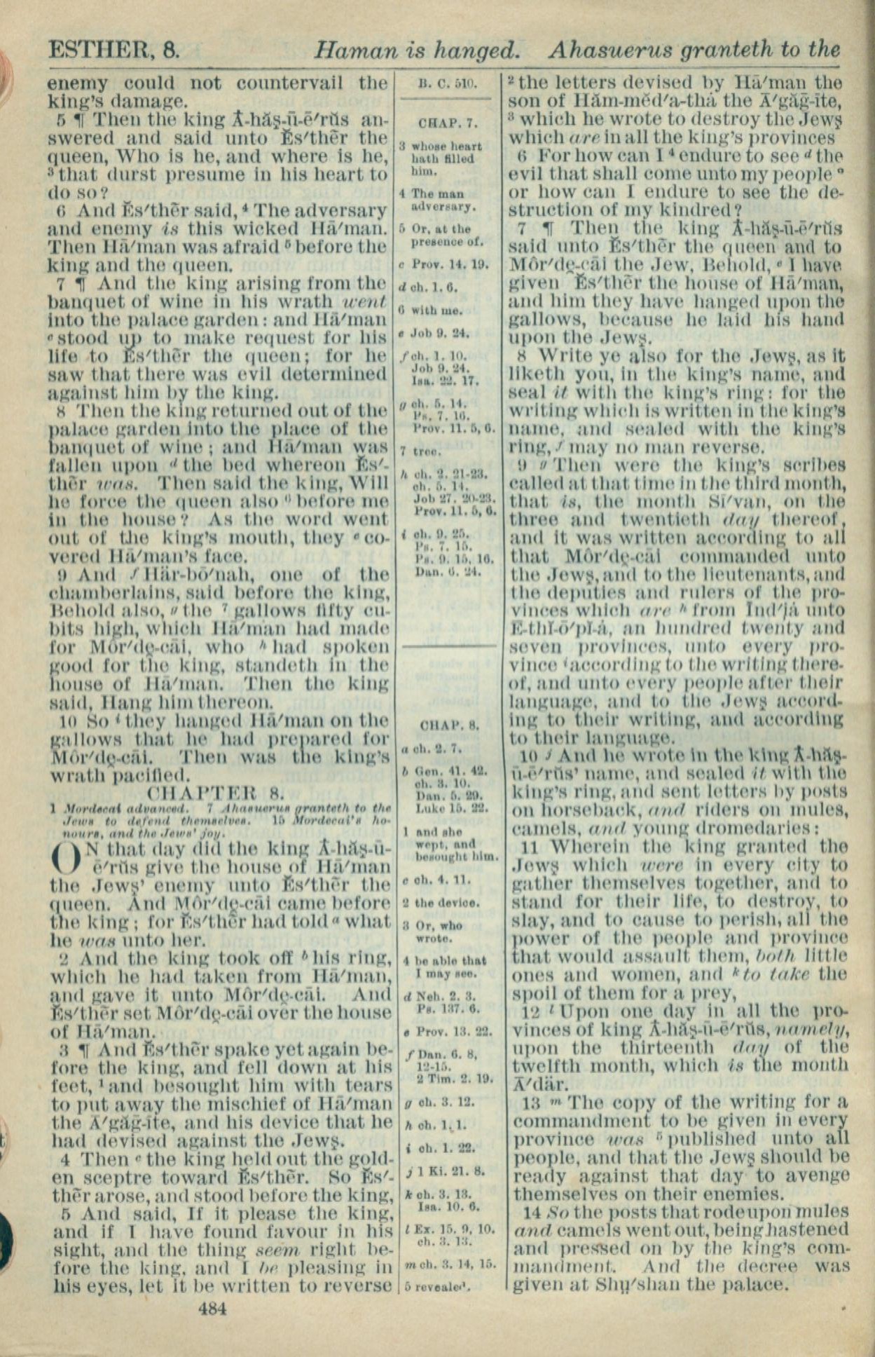 1916年Holy Bible 以斯帖记 7 章 5 节到 8 章 14 节