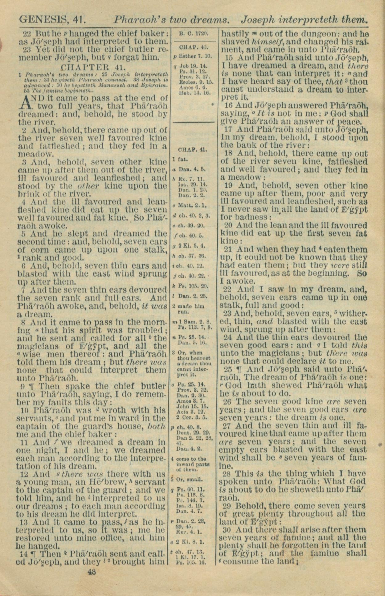 1916年Holy Bible 创世记 40 章 22 节到 41 章 30 节