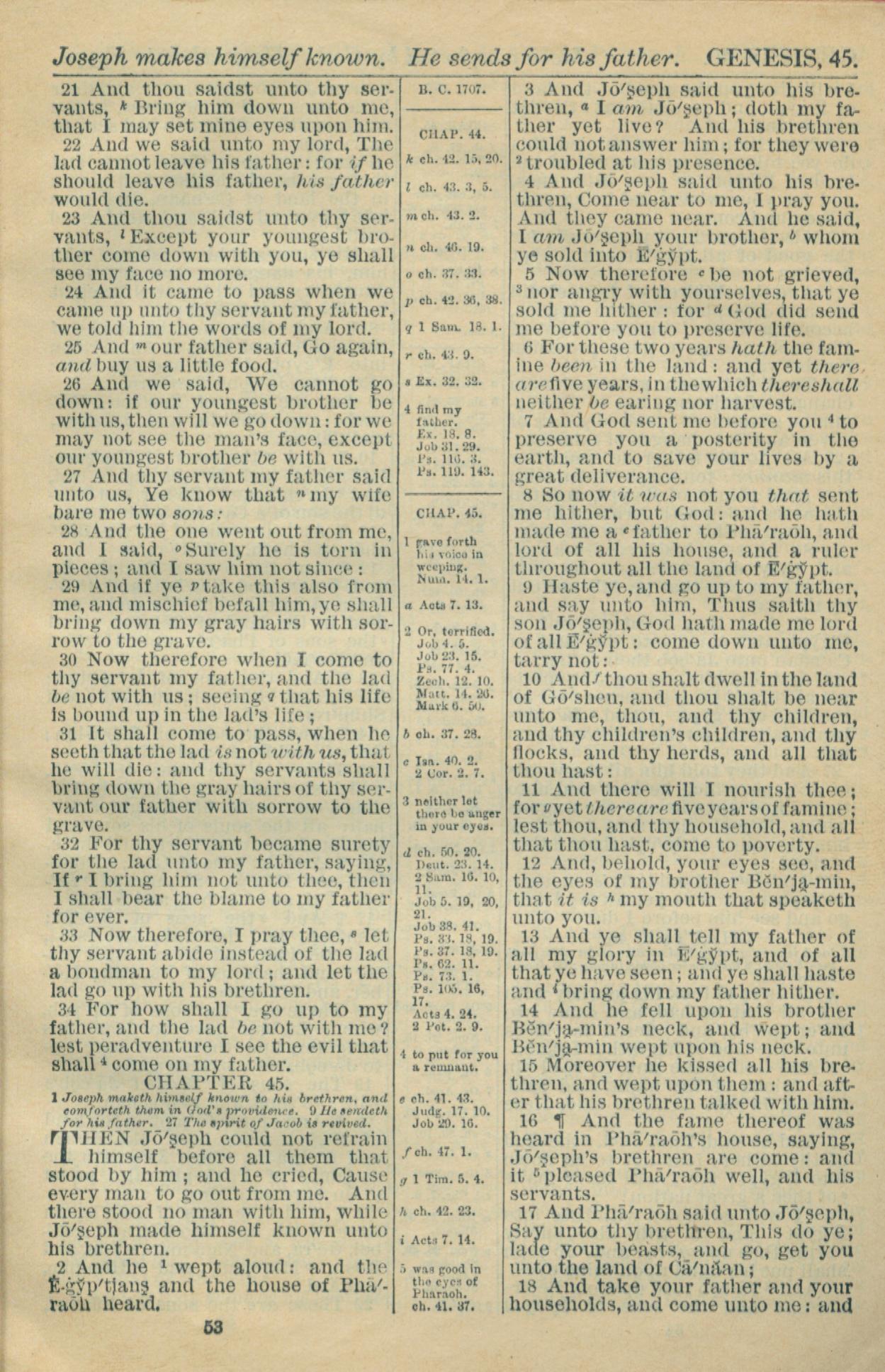 1916年Holy Bible 创世记 44 章 21 节到 45 章 18 节