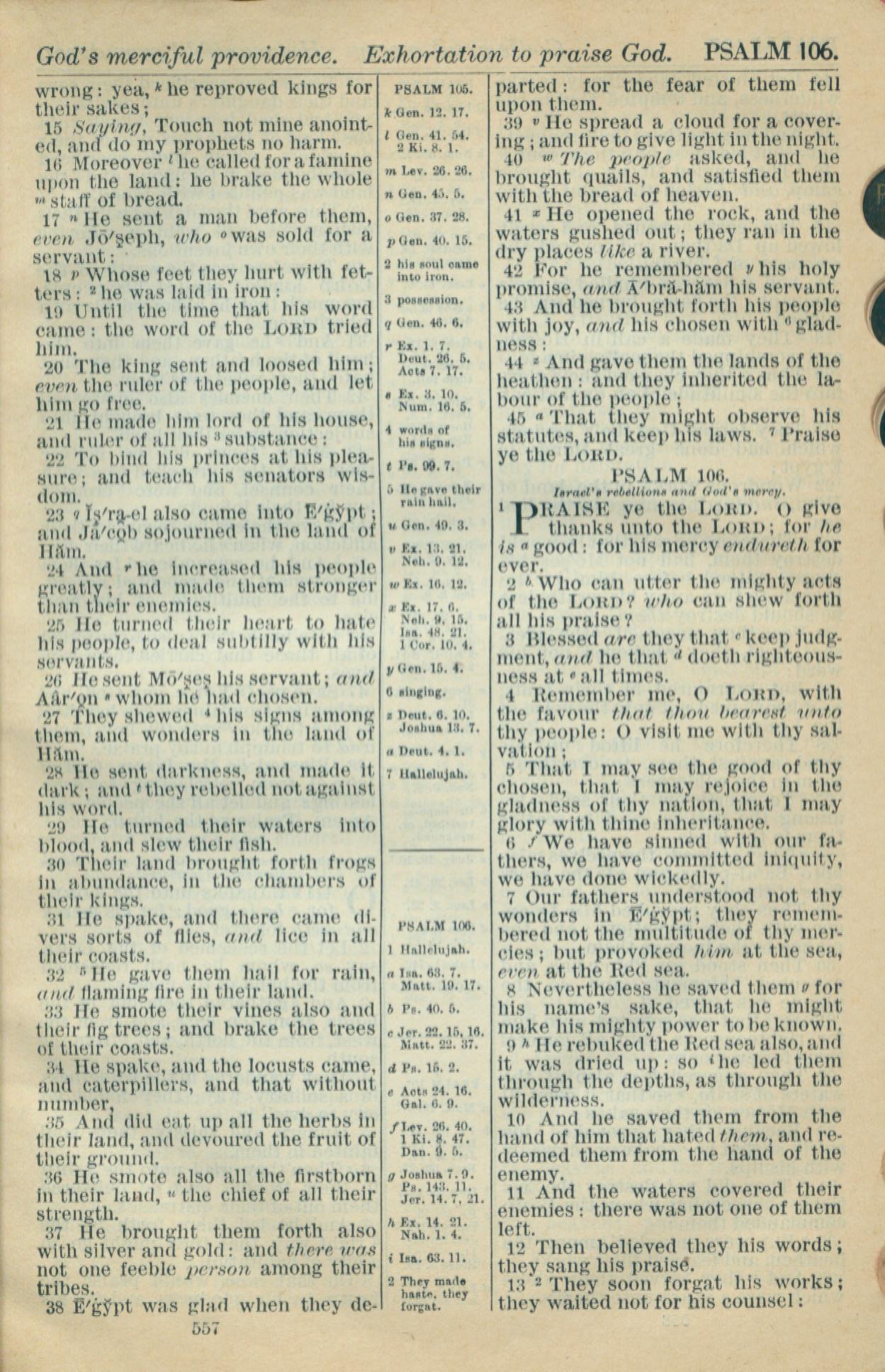 1916年Holy Bible 诗篇 105 章 15 节到 106 章 13 节