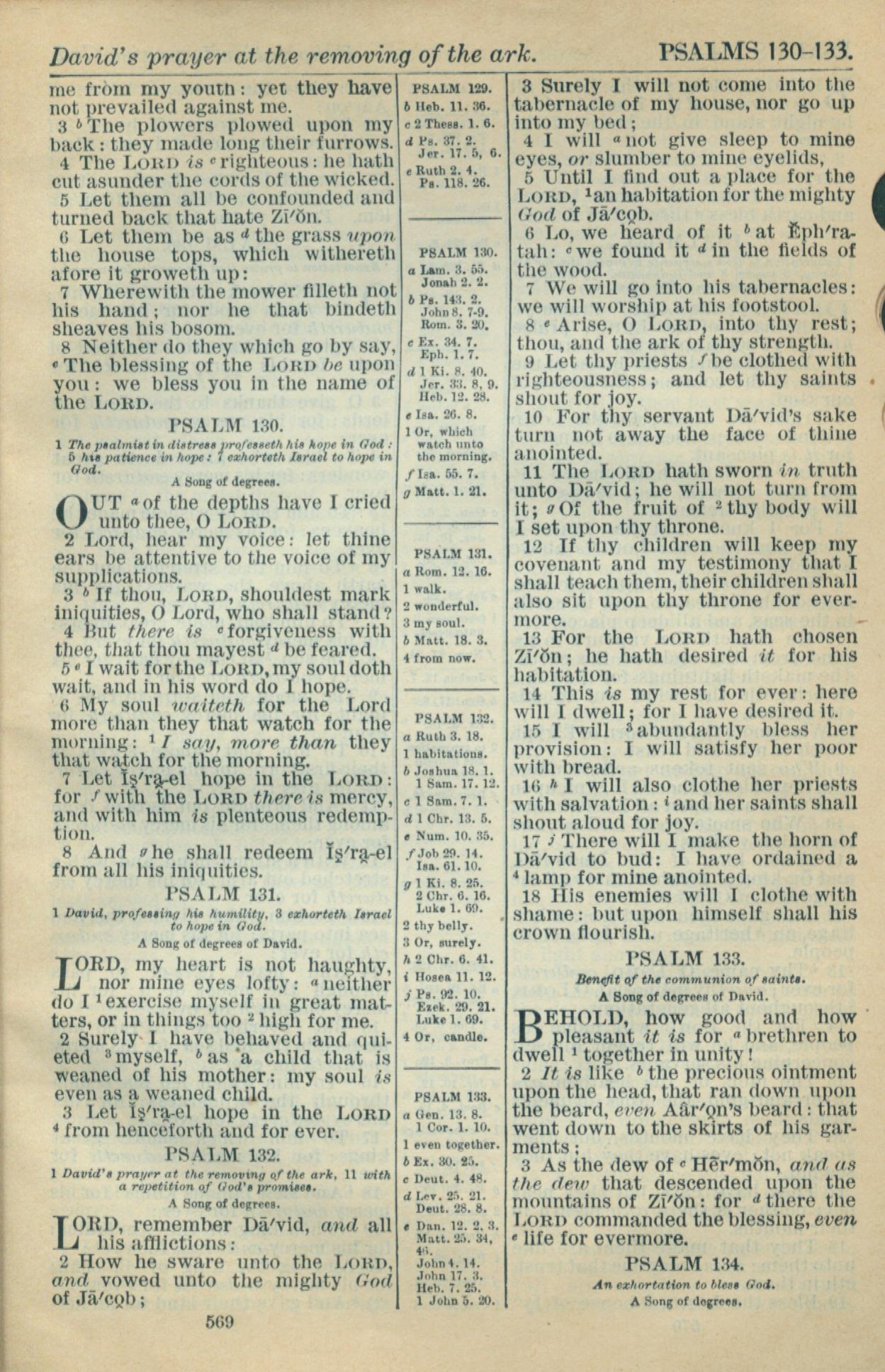 1916年Holy Bible 诗篇 129 章 3 节到 133 章 3 节
