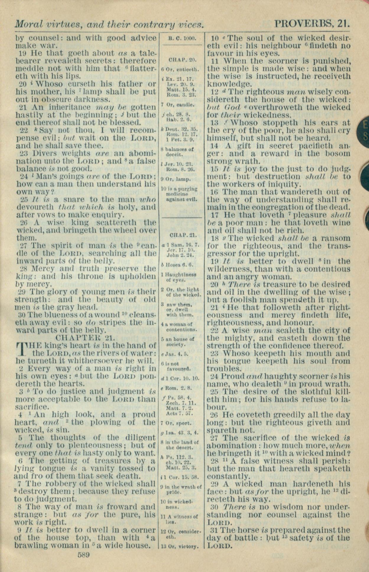 1916年Holy Bible 箴言 20 章 19 节到 21 章 31 节