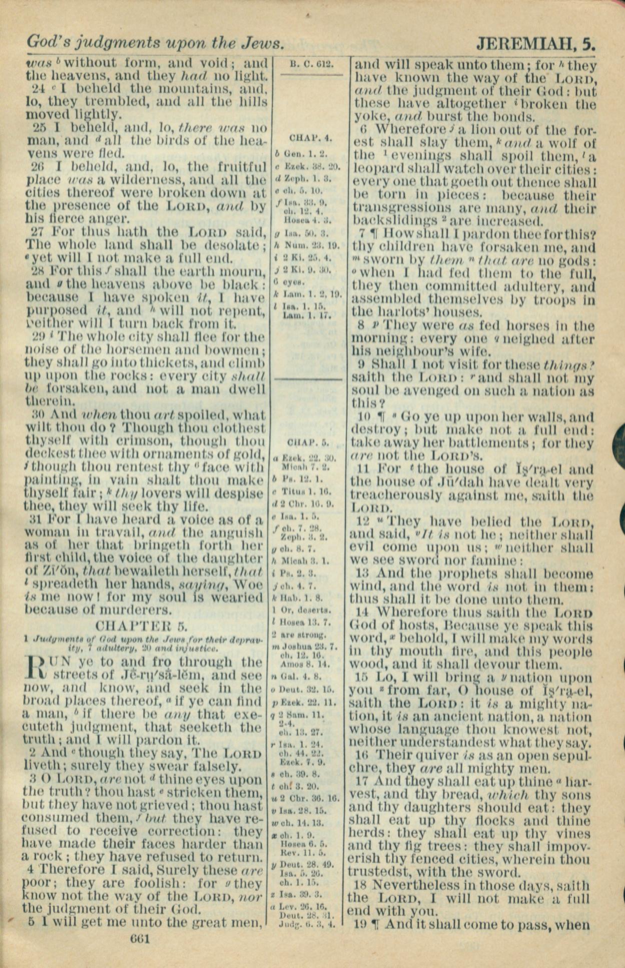 1916年Holy Bible 耶利米书 4 章 24 节到 5 章 19 节