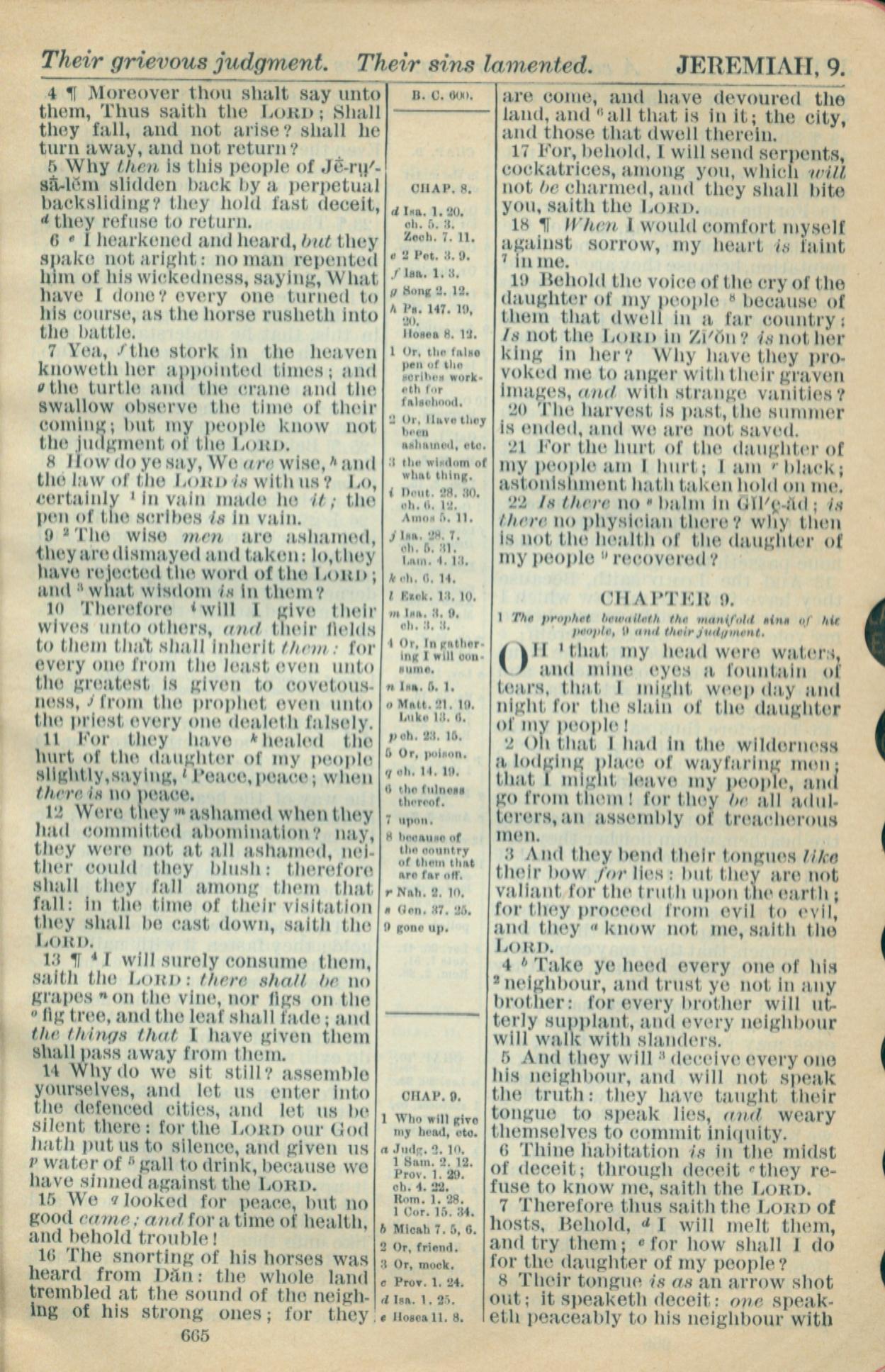 1916年Holy Bible 耶利米书 8 章 4 节到 9 章 8 节