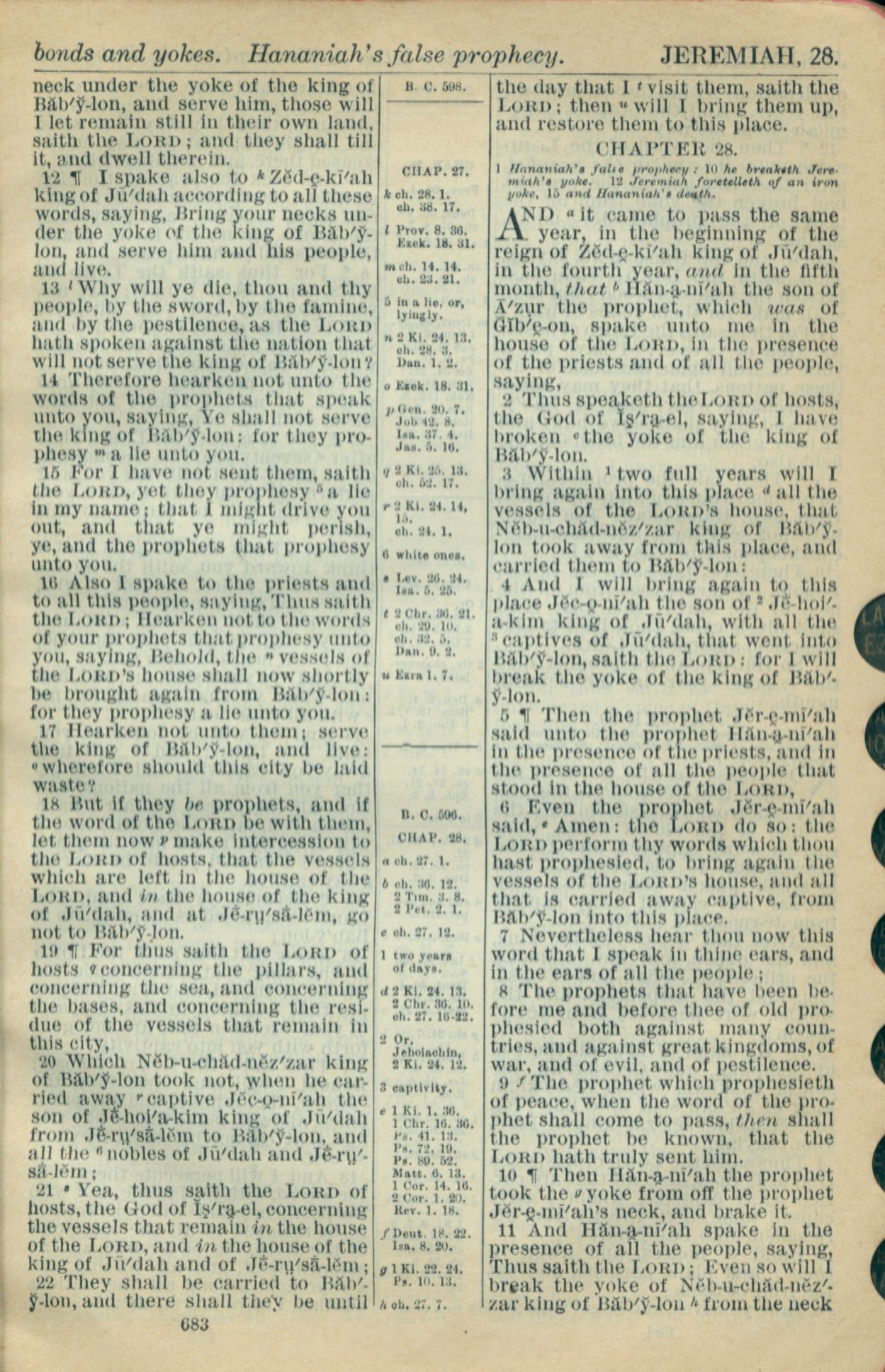1916年Holy Bible 耶利米书 27 章 12 节到 28 章 11 节