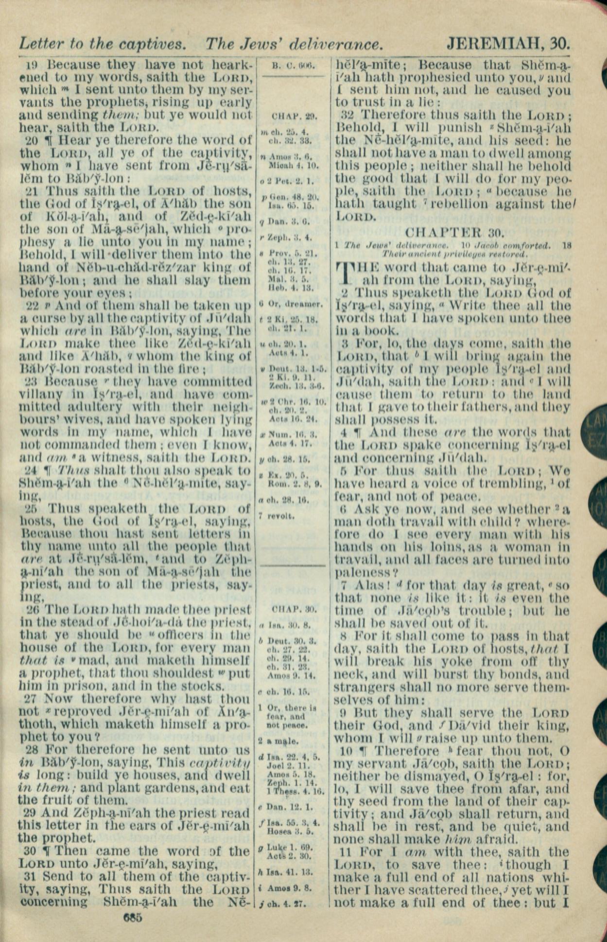 1916年Holy Bible 耶利米书 29 章 19 节到 30 章 11 节