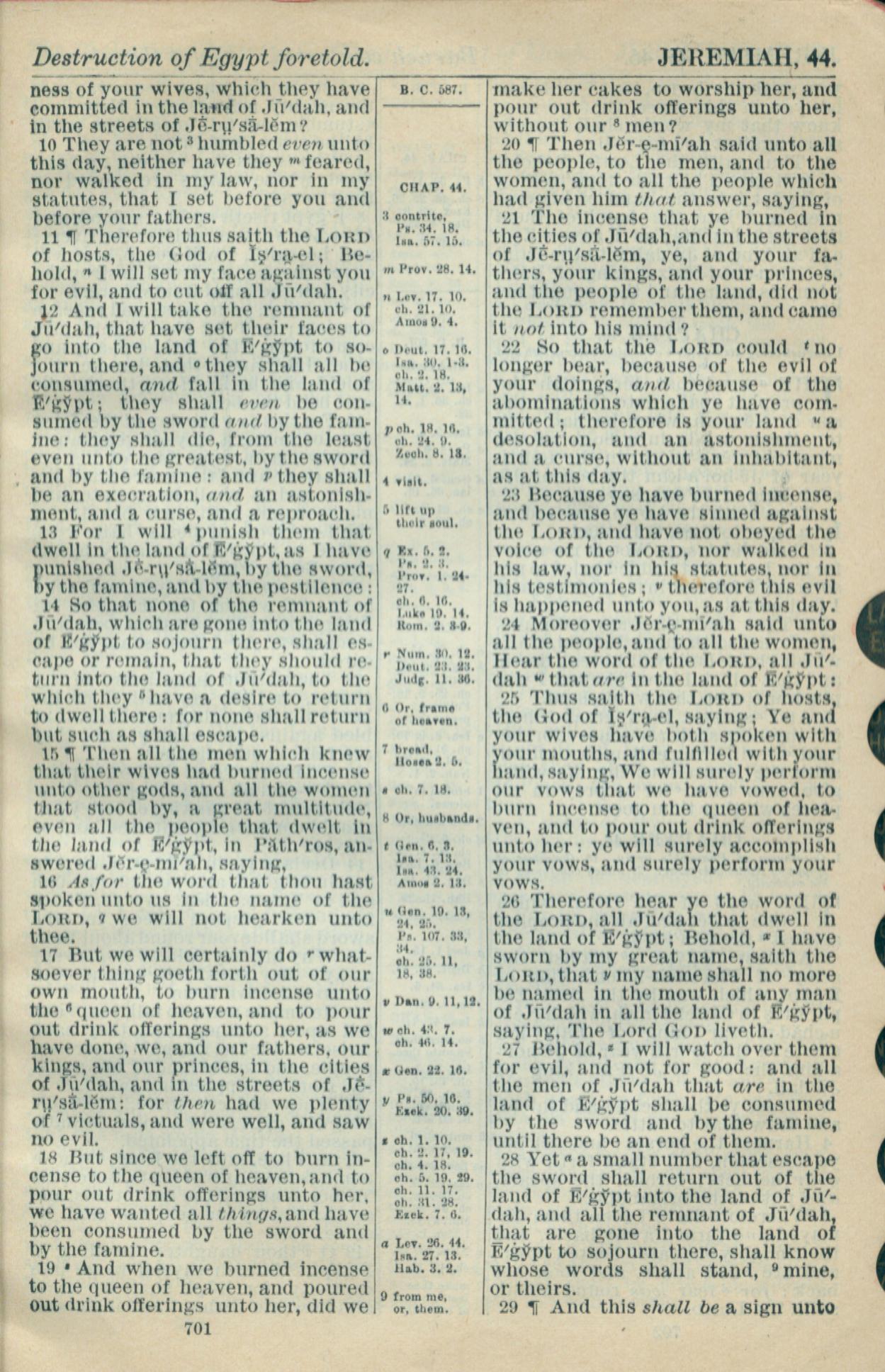 1916年Holy Bible 耶利米书 44 章 10 节到 44 章 29 节