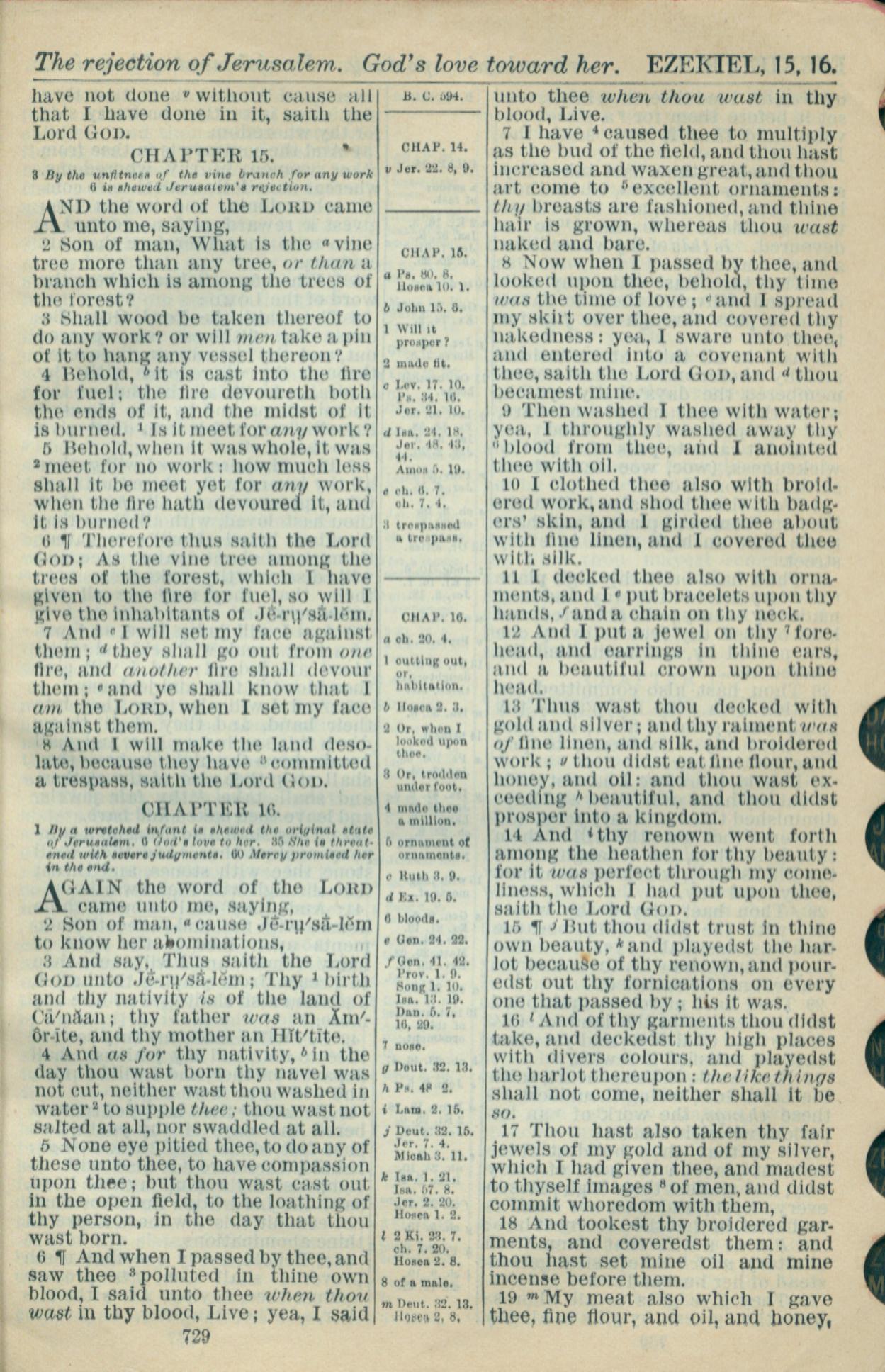1916年Holy Bible 以西结书 15 章 1 节到 16 章 19 节