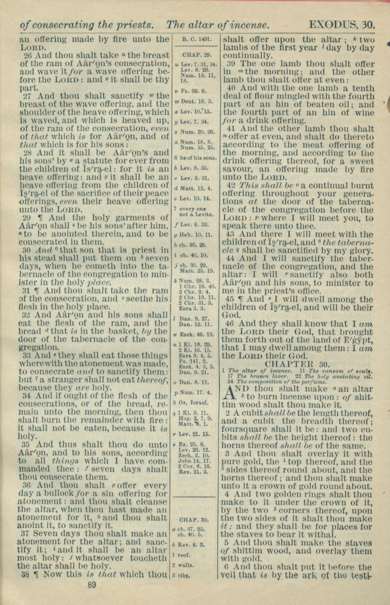1916年Holy Bible 出埃及记 29 章 26 节到 30 章 6 节