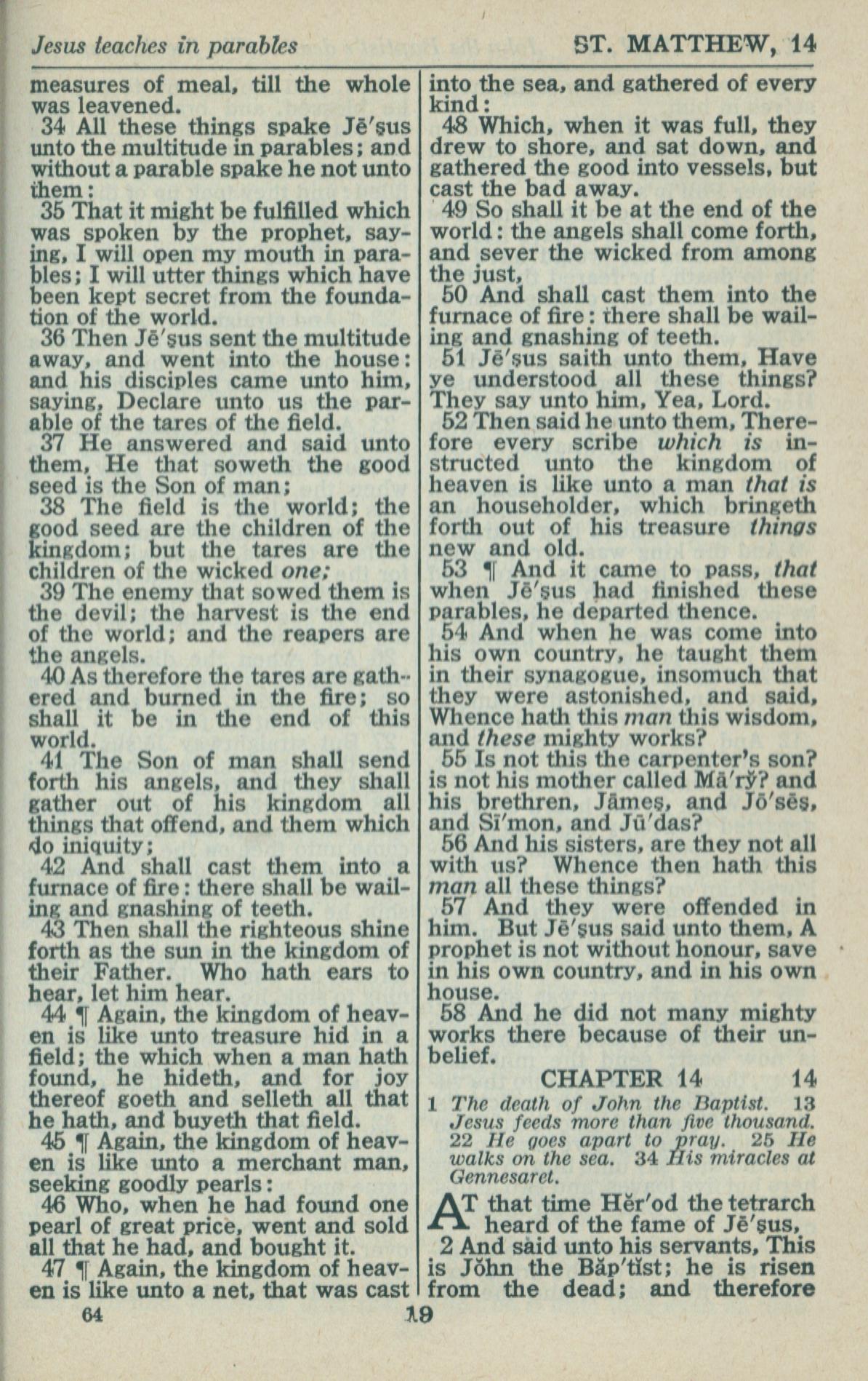 1946年King James Version 马太福音 13 章 34 节到 14 章 2 节